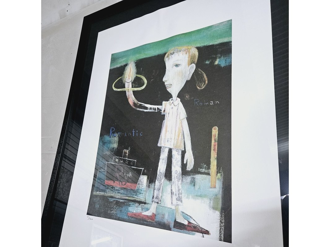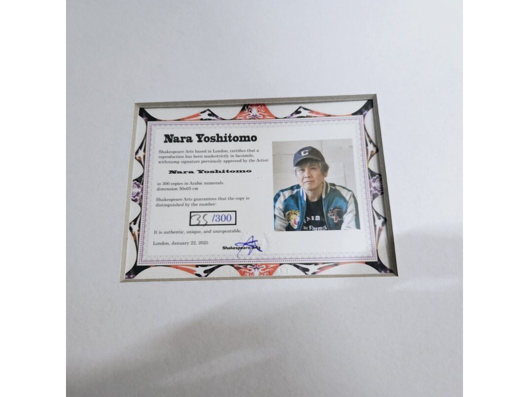 Product: Nara Yoshitomo - Lithograaf - ''Romantic Light'' Afmeting: 78cm x 63cm Conditie: Nieuw Specificaties: Limited edition 35/300 Uitgever Shakespeare Arts, wordt geleverd in nieuw zwart frame.