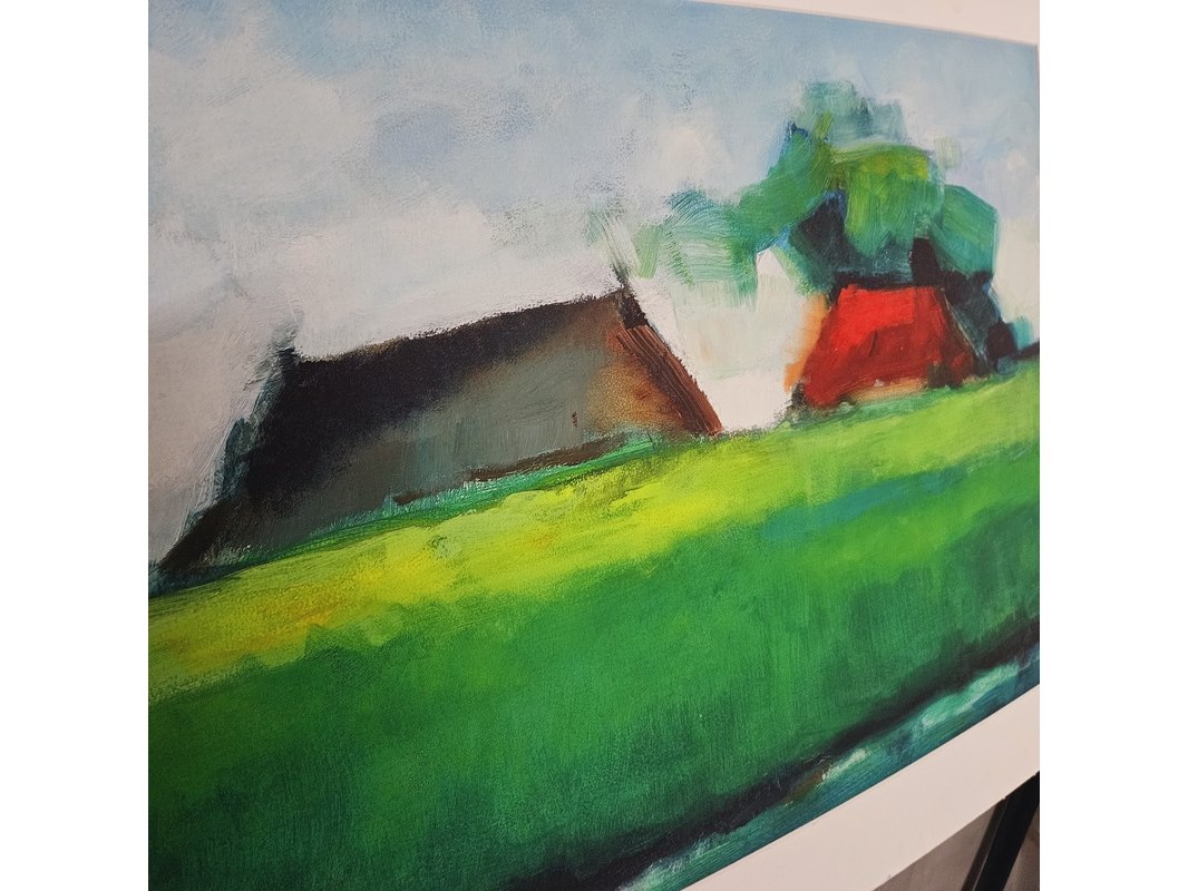 Product: Kunstwerk van kunstenaar Marian Beek - ''Boerderij achter de dijk'' Afmeting: 90cm x 60cm Conditie: Gebruikt Specificaties: Kunstwerk van kunstenaar Marian Beek - ''Boerderij achter de dijk''