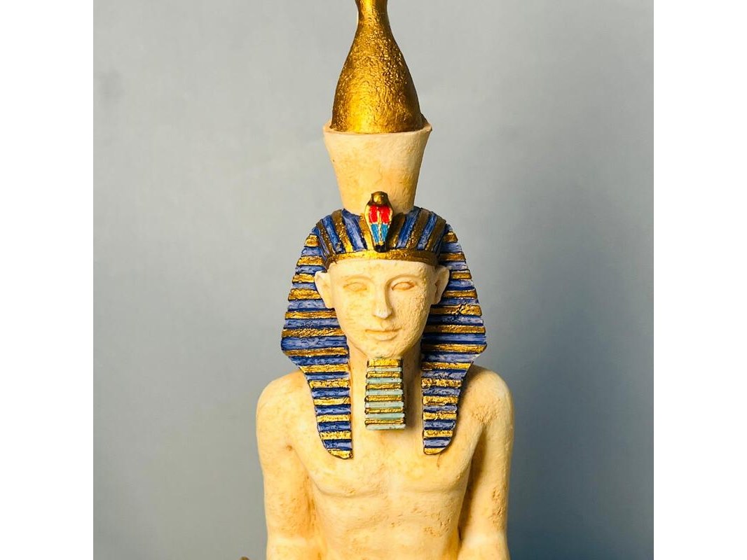 Product: Egyptische Farao sculptuur - Ramsess II beeld Conditie: Nieuw Specificaties: Deels uit limestone gemaakt.