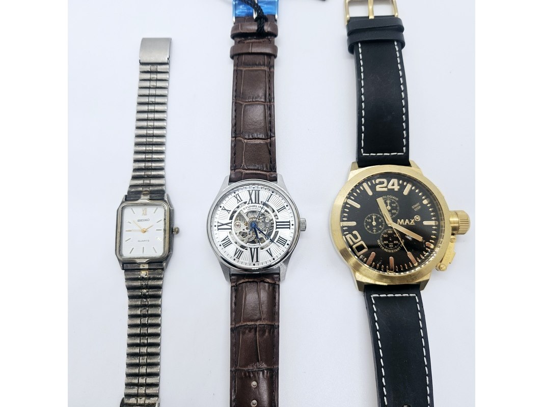 Product: Collectie horloges Conditie: Gebruikt Specificaties: Deze partij wordt verkocht in de huidige staat ('as is'), als een ongecontroleerde partij voor de hobbyist. De authenticiteit van de merkhorloges in deze partij is niet geverifieerd en wordt niet gegarandeerd.