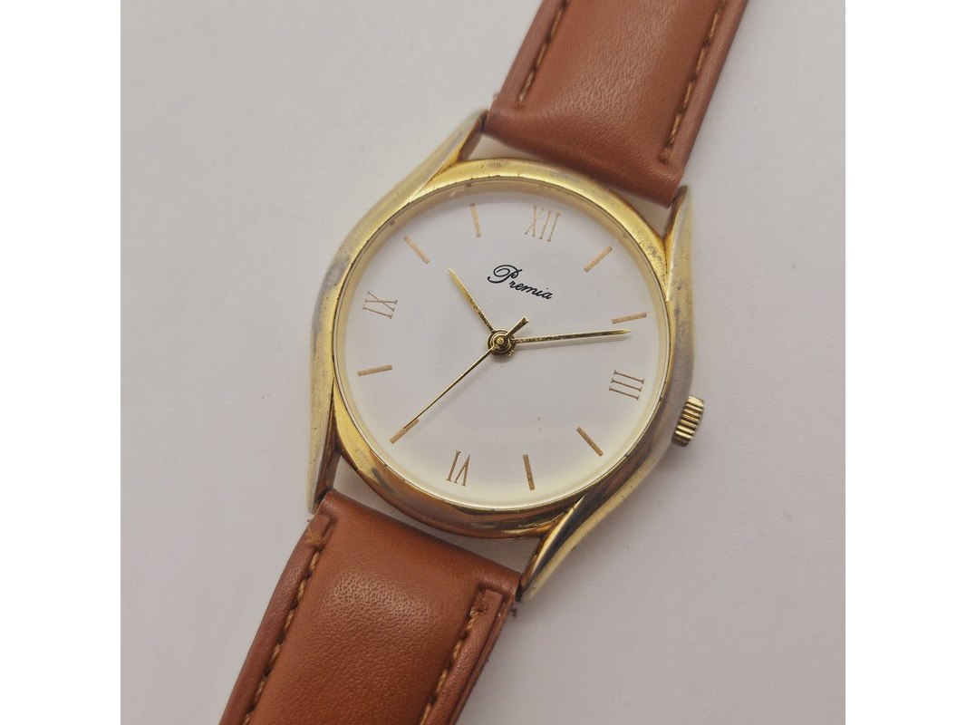 Product: Premia herenhorloge - Mechanische handwinder Afmeting: 34mm Conditie: Gebruikt Specificaties: Merk: Premia. Goed werkende mechanische handwinder.