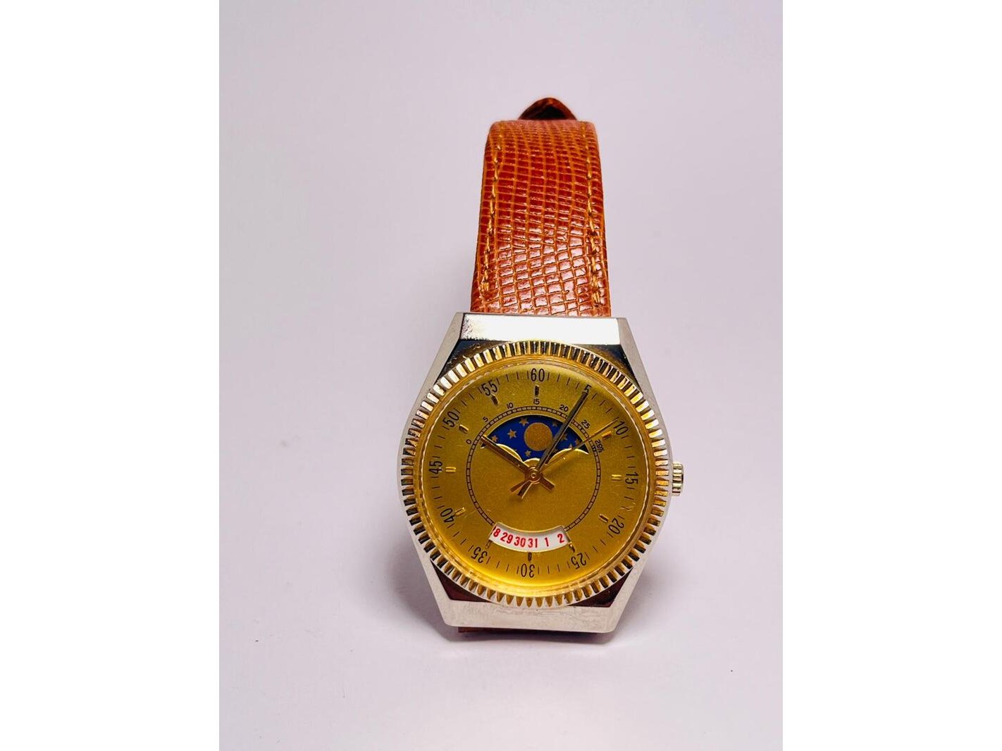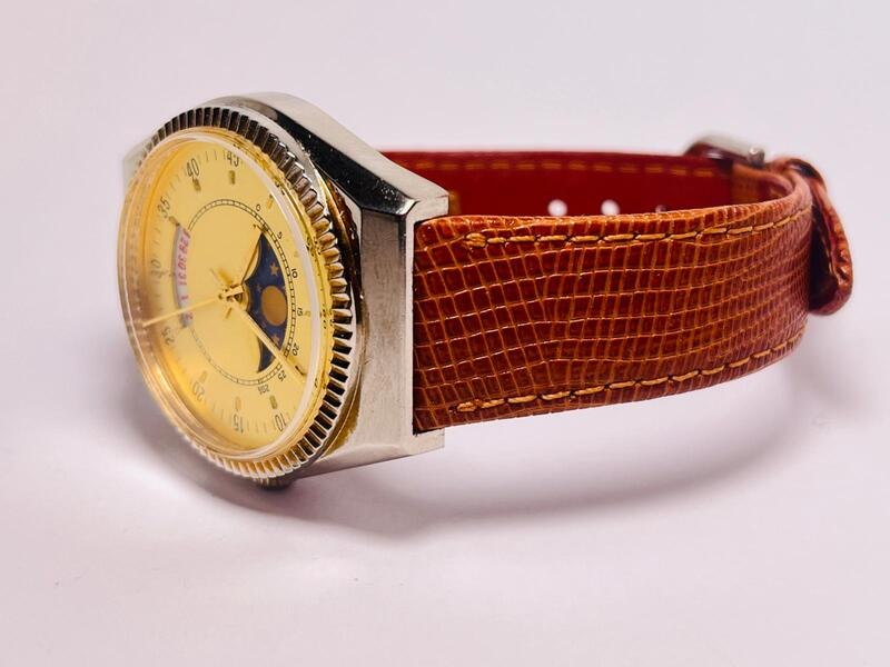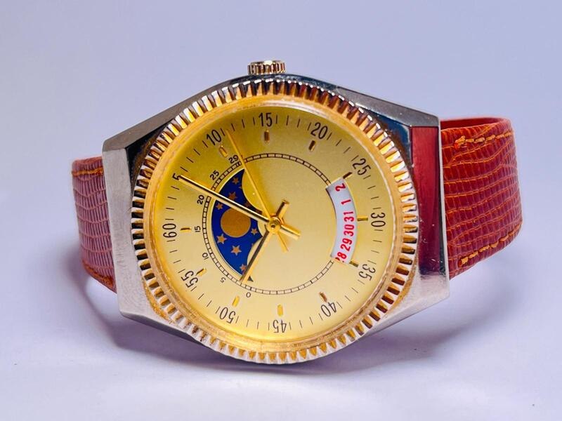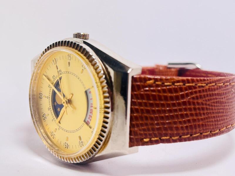 Product: Moonphase herenhorloge met mechanisch uurwerk Afmeting: 36mm Conditie: Gebruikt Specificaties: Moonphase is een decoratie.