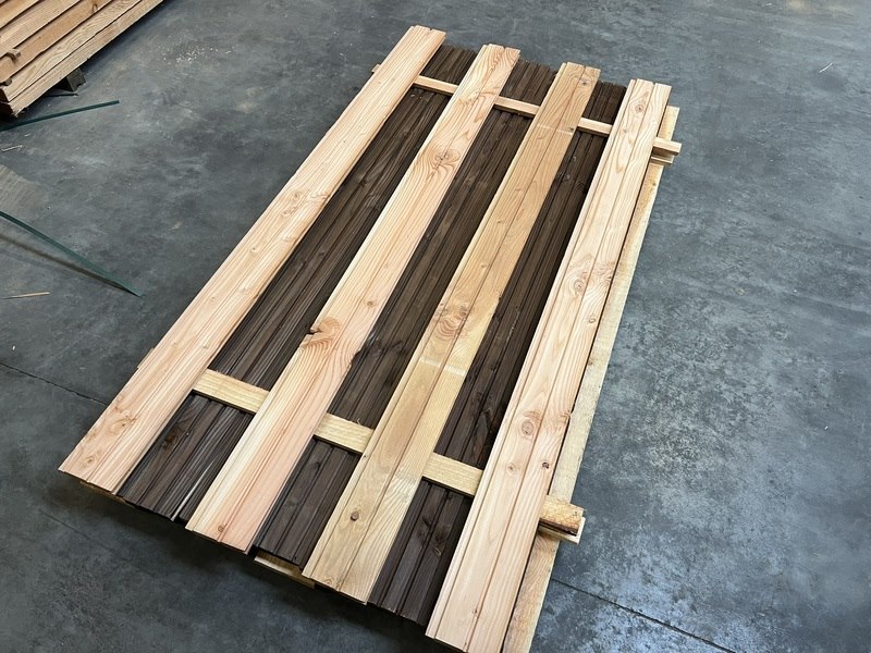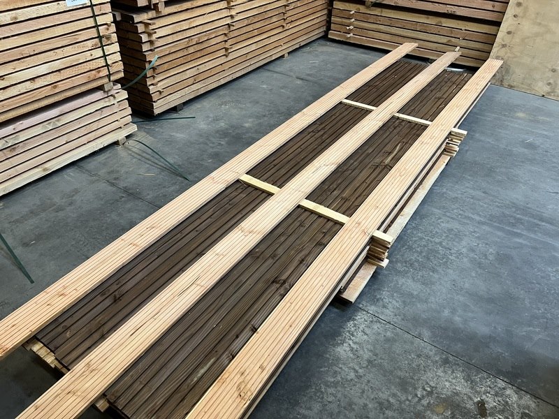 Product: Div. Blank en bruin Douglas hout Materiaal: Douglashout Specificaties: 7 st triple rhombus Douglas bruin lengte 2000mm, 4 st dubbel rhombus blank Douglas lengte 2000mm, 7 st triple rhombus blank Douglas lengte 4000mm, 7 st triple rhombus Douglas bruin lengte 4000mm, 3 st vlonderplank blank Douglas 28x145mm lengte 5000mm