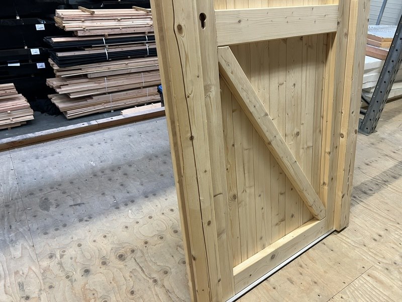 Merk: Hillhout Product: Vuren deurkozijn Materiaal: Vurenhout Specificaties: Afmetingen: 900x2010mm, links draaiend, excl. hang en sluitwerk, STIJL GESCHEURD ZIE FOTO'S