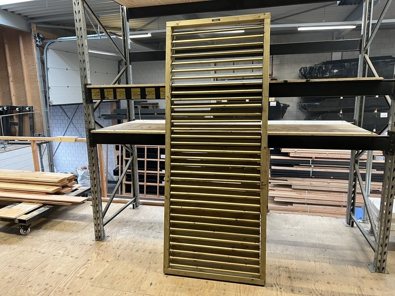 Merk: Hillhout Product: Schutterscherm groen geïmpregneerd Materiaal: Groen geïmpregneerd Conditie: nieuw Specificaties: Afmetingen: 890x2240mm