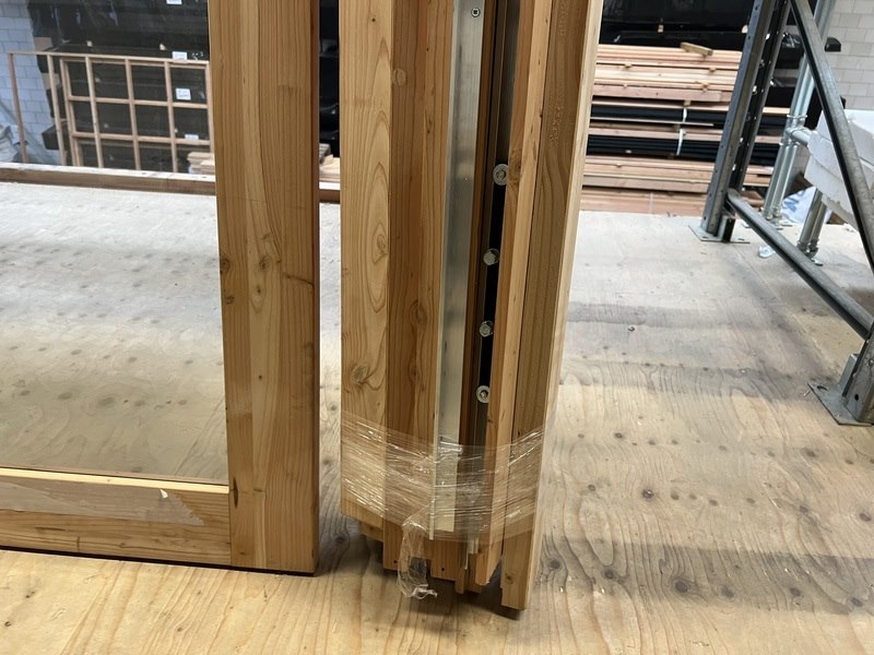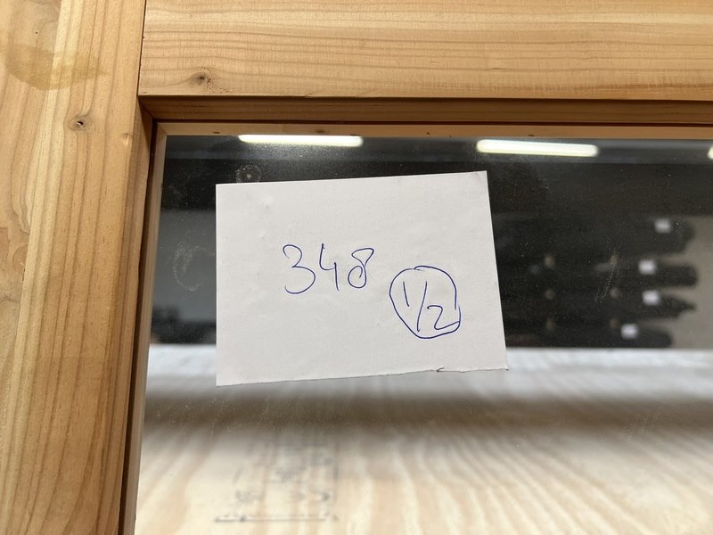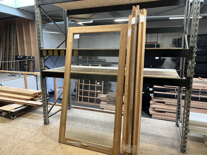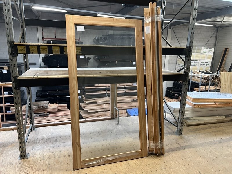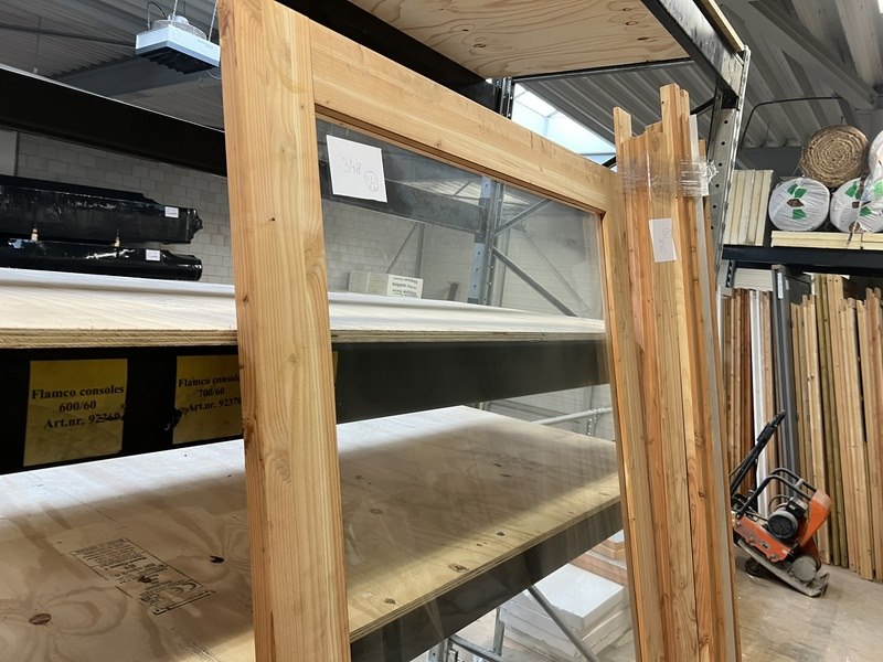 Merk: Hillhout Product: Douglas schuifpui, niet compleet Materiaal: Douglashout Specificaties: Afmetingen glasframe: 1135x2120mm, niet compleet