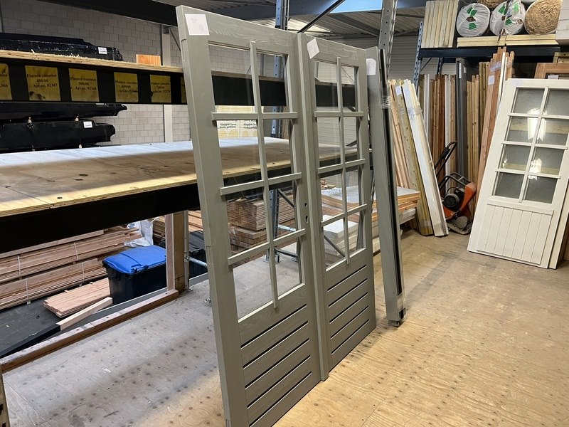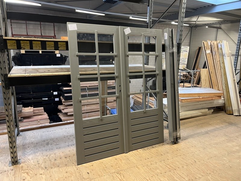 Merk: Hillhout Product: Dubbel deurkozijn, grijs gespoten Specificaties: Afmetingen: 1685x2010mm, grijs gespoten, excl. hang en sluitwerk
