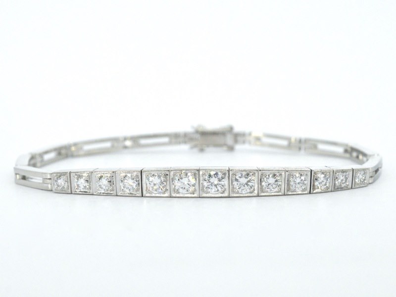 Product: Gouden antieke riviera armband Specificaties: Diamant: Natuurlijk Aantal: 13 stuks Slijpvorm: Briljant geslepen Gewicht (carat): 1.30 carat Kleur: D-E Zuiverheid: VVS Slijpkwaliteit: Zeer mooi Juweel: Armband Gewicht: 12.7 gram Afmetingen/lengte: 17 cm Materiaal: 14k goud (585) Conditie: Zo goed als nieuw Verpakking: Luxe sieradendoos Toelichting: De kwaliteit is overgenomen van het rapport behorend bij item. De waardebepaling is een beoordeling van een gecertificeerde diamantair, gebaseerd op consumentenprijzen. Consumentenprijs: € 11.900,- *Ring kan als het mogelijk is op maat gemaakt worden.