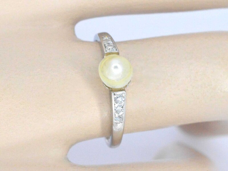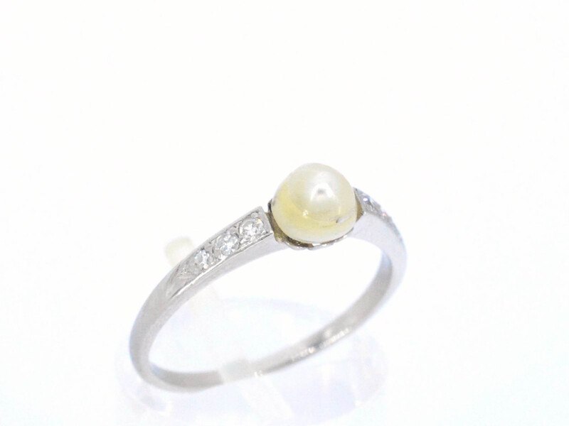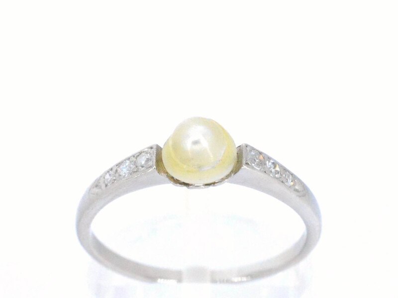 Product: Gouden ring met diamanten en een orient parel Specificaties: Diamant: Natuurlijk Aantal: 6 stuks Slijpvorm: Rond geslepen Kleur: F Zuiverheid: VS Slijpkwaliteit: Zeer mooi Juweel: Ring Gewicht: 2.6 gram Ringmaat (op maat gemaakt*): 54 (17.25 mm) Materiaal: 14K goud (585) Conditie: Vintage Verpakking: Luxe sieradendoos Toelichting: De kwaliteit is overgenomen van het rapport behorend bij item. De waardebepaling is een beoordeling van een gecertificeerde diamantair, gebaseerd op consumentenprijzen. Consumentenprijs: € 1.800,- *Ring kan als het mogelijk is op maat gemaakt worden.