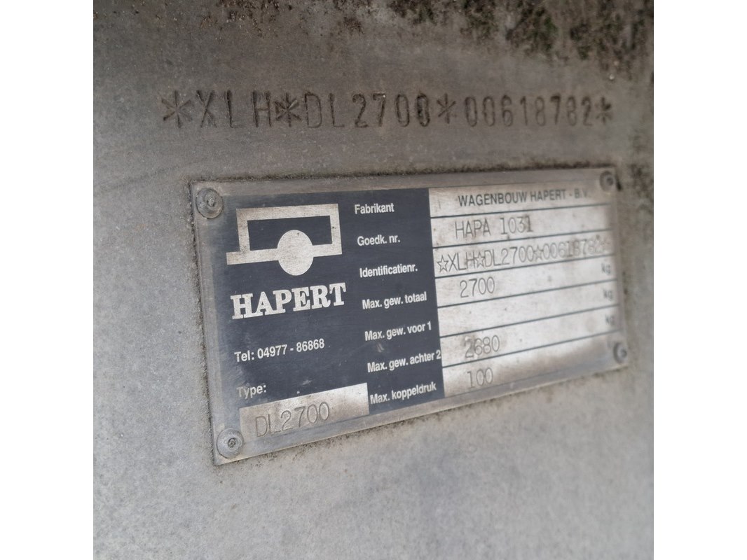 Merk: Hapert Product: Aanhangwagen BouwJaar: 1996 Conditie: gebruikt Specificaties: Kenteken: WP-82-JH Eerste toelating nationaal: 26-01-1996 APK vervaldatum: Niet van toepassing Brandstof: Niet van toepassing Afgelezen tellerstand: Niet van toepassing Transmissie: Niet van toepassing Aantal sleutels: Niet van toepassing VIN nummer: XLHDL270000618782 Start: Niet van toepassing Opties e.d. Waargenomen gebreken Diverse beschadigingen rondom