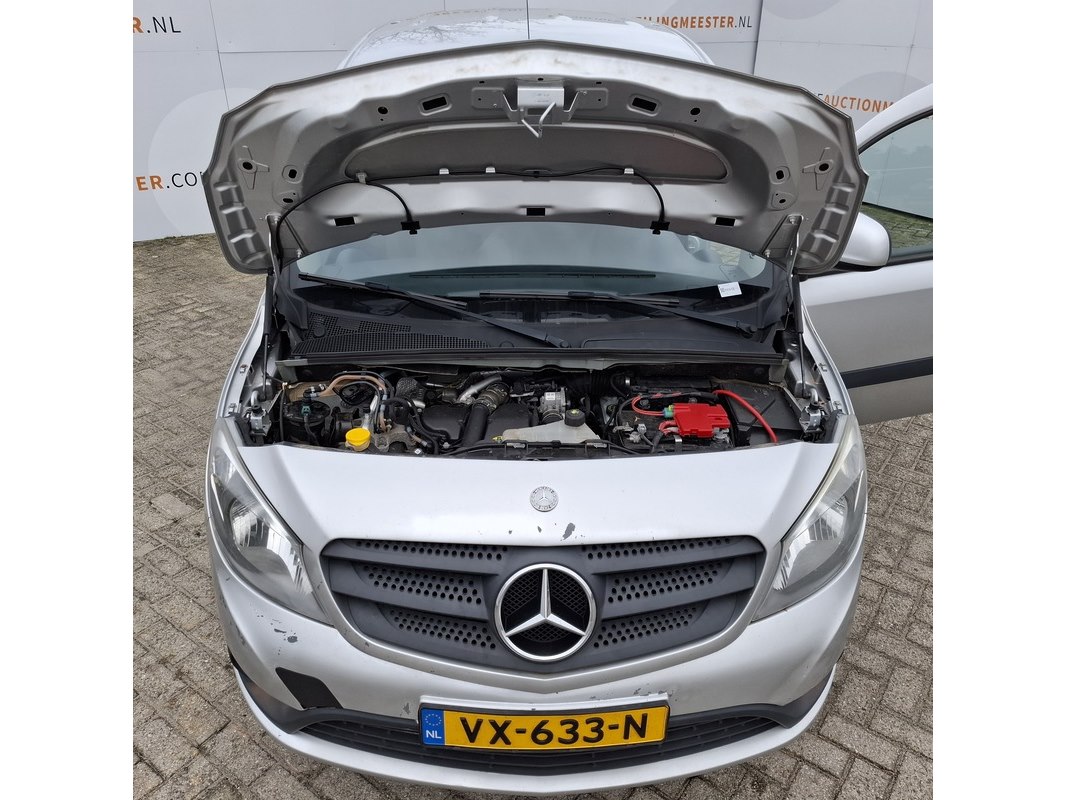 Merk: Mercedes-Benz Product: Personenauto Kleur: N.v.t. BouwJaar: 2016 Specificaties: Kenteken: VX-633-N Eerste toelating nationaal: 28-06-2016 APK vervaldatum: 25-07-2026 Brandstof: Diesel Afgelezen tellerstand: 276.809 Transmissie: Handgeschakeld, 5 versnellingen Aantal sleutels: 1 VIN nummer: WDF4156031U175347 Start: Ja Opties e.d. Elektrische ramen Elektrische spiegels Radio Airconditioning Cruise control Waargenomen gebreken Diverse beschadigingen rondom