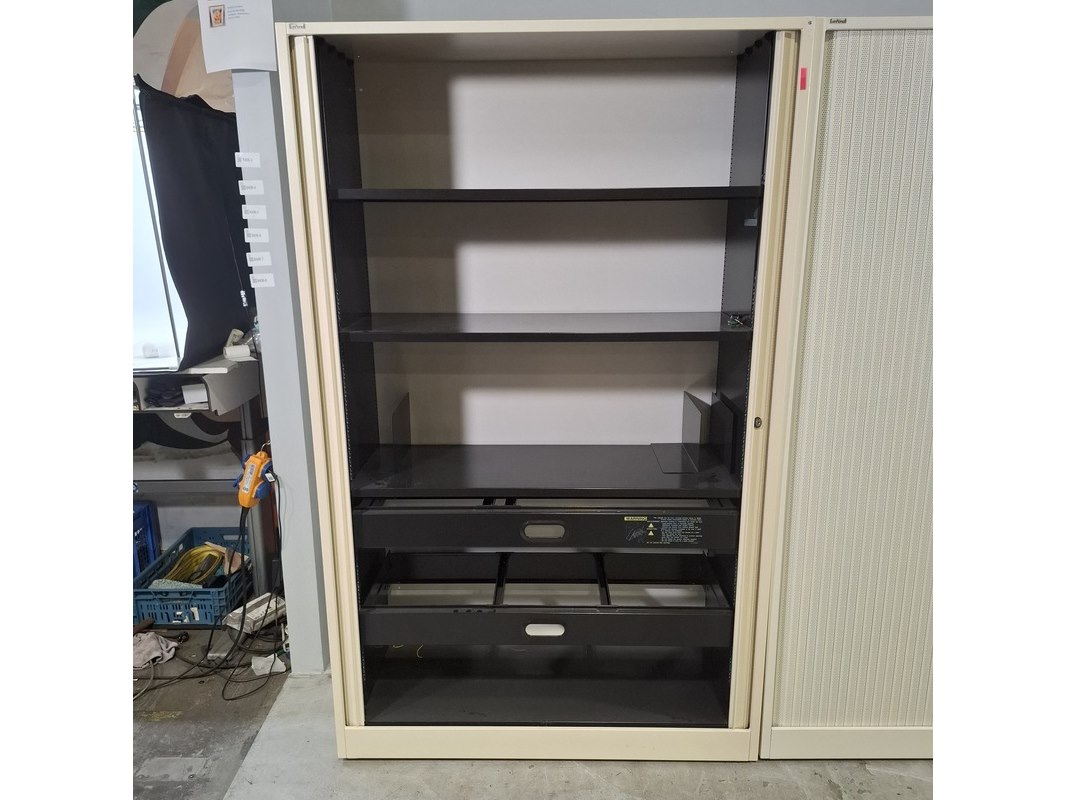 Merk: Ahrend Product: Jaloeziekast Afmeting: HxBxD ca. 195x120x45 cm. Conditie: gebruikt Specificaties: De kasten hebben diverse beschadigingen en gebreken. Exclusief sleutels.