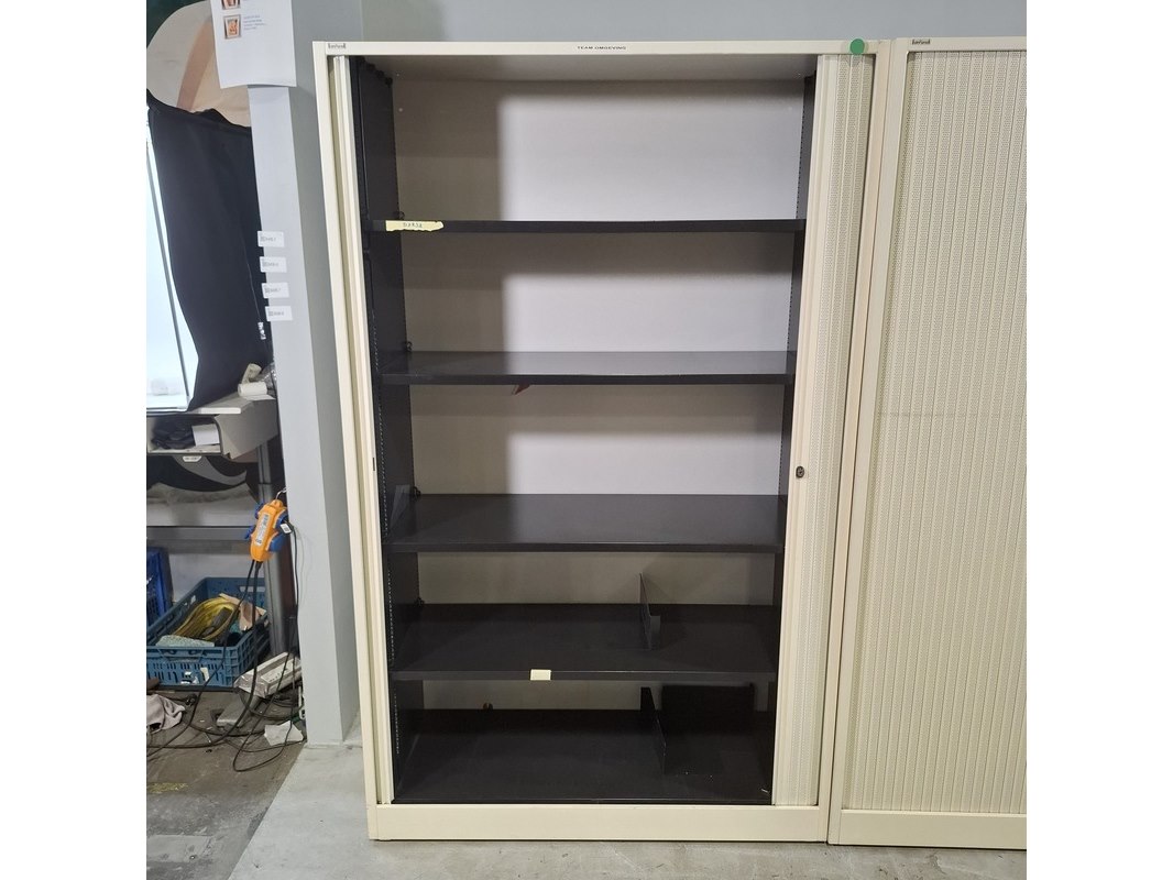 Merk: Ahrend Product: Jaloeziekast Afmeting: HxBxD ca. 195x120x45 cm. Conditie: gebruikt Specificaties: De kasten hebben diverse beschadigingen en gebreken. Exclusief sleutels.