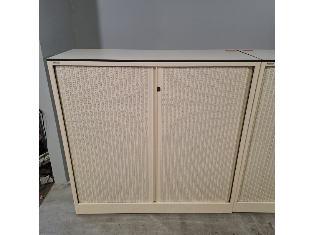 Merk: Ahrend Product: Jaloeziekast Afmeting: HxBxD ca. 120x120x45 cm Conditie: gebruikt Specificaties: De kasten hebben diverse beschadigingen en gebreken. Exclusief sleutels.
