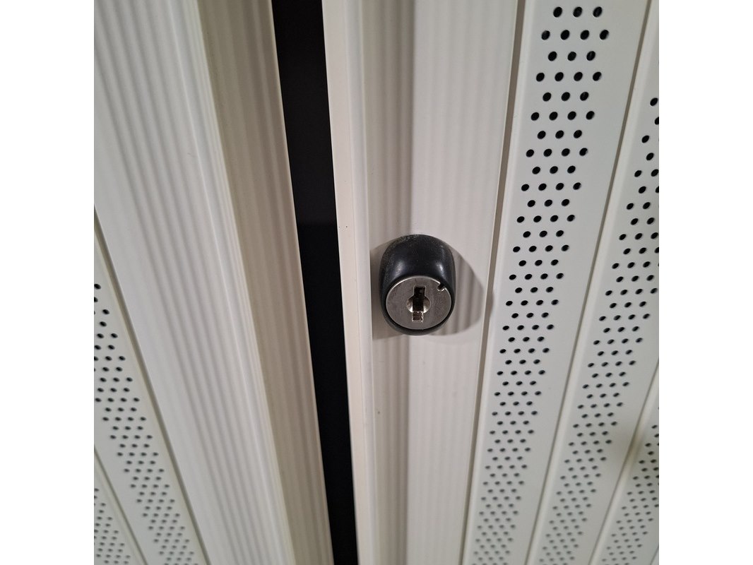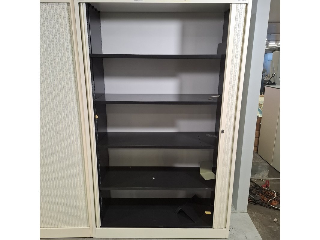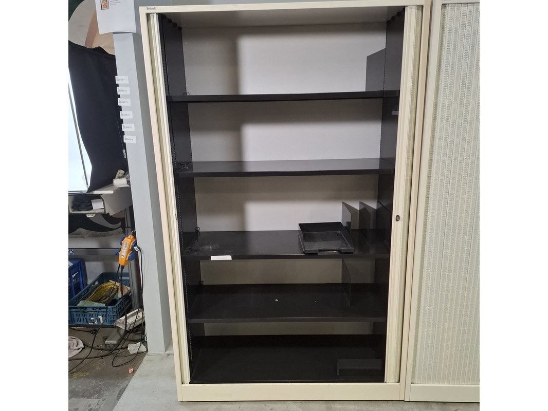 Merk: Ahrend Product: Jaloeziekast Afmeting: HxBxD ca. 195x120x45 cm. Conditie: gebruikt Specificaties: De kasten hebben diverse beschadigingen en gebreken. Exclusief sleutels.