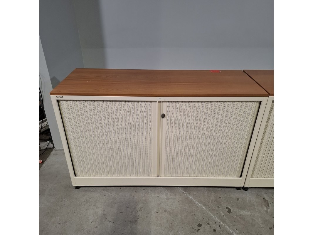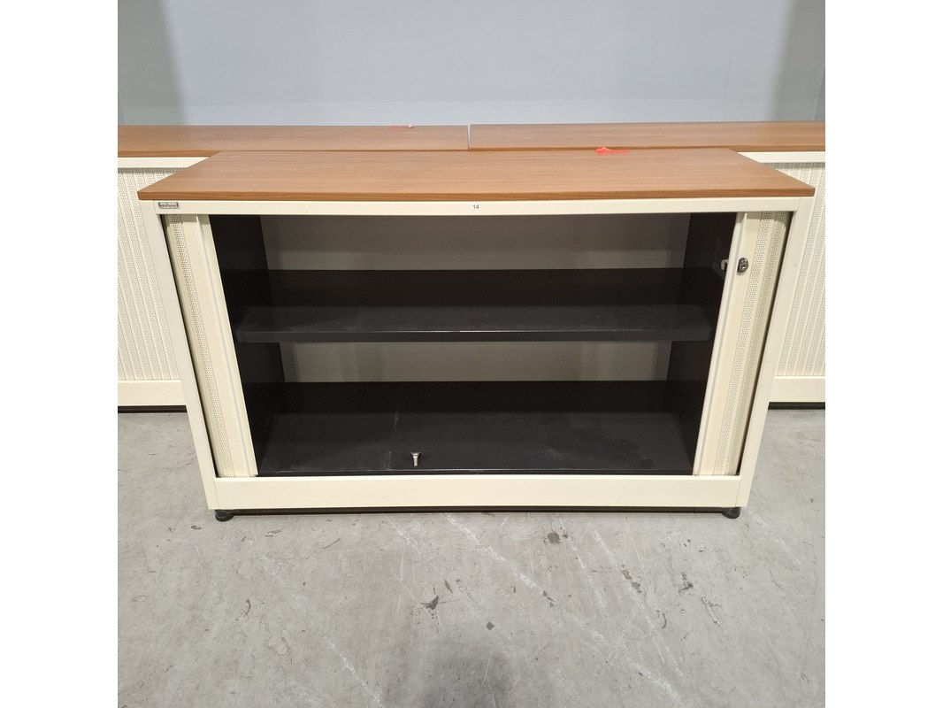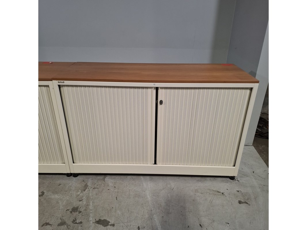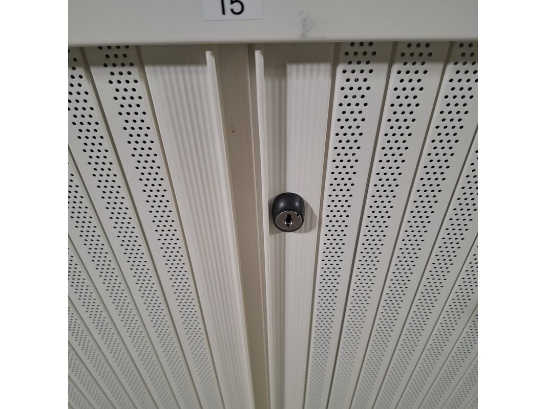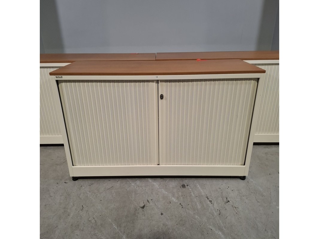 Product: Jaloeziekast Afmeting: HxBxD ca. 74x120x45 cm. Conditie: gebruikt Specificaties: De kasten hebben diverse beschadigingen en gebreken. Exclusief sleutels.