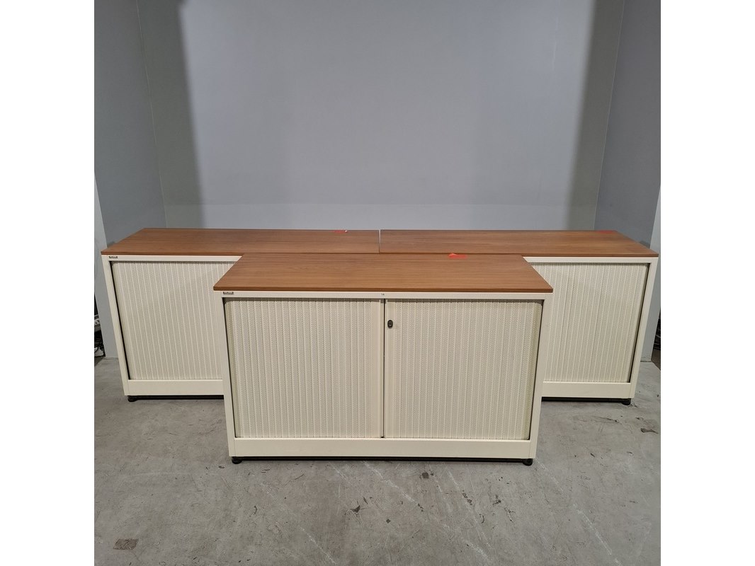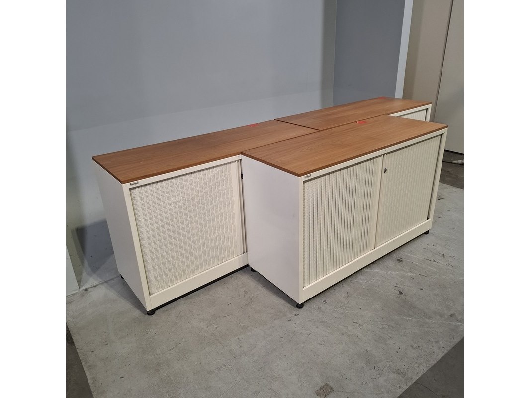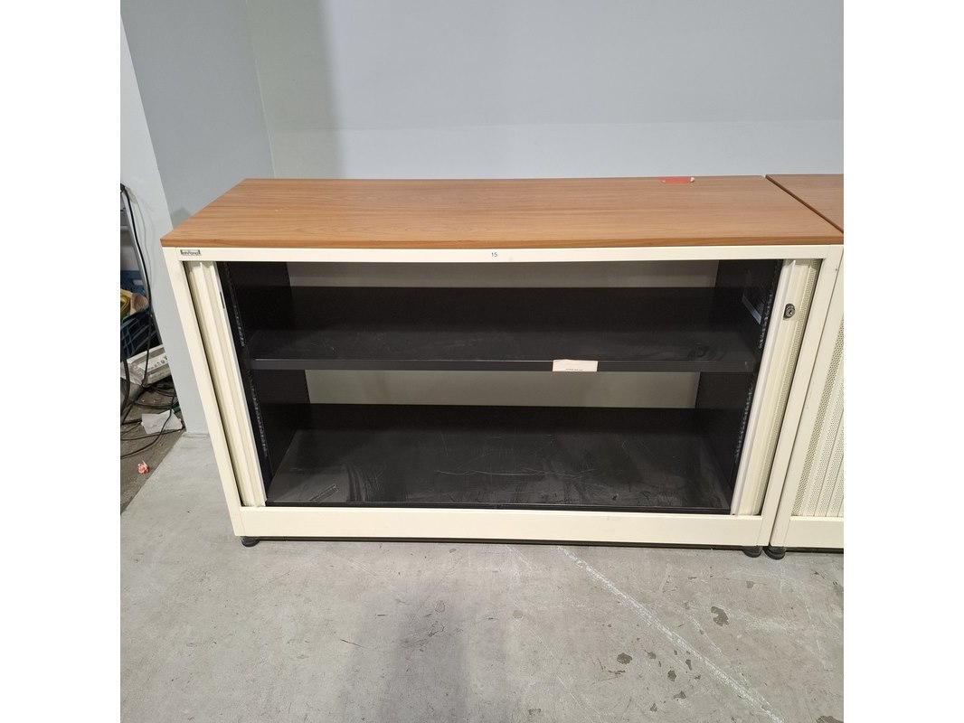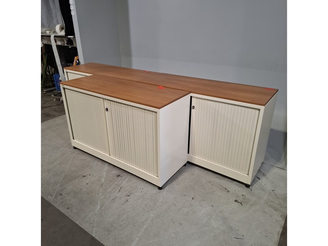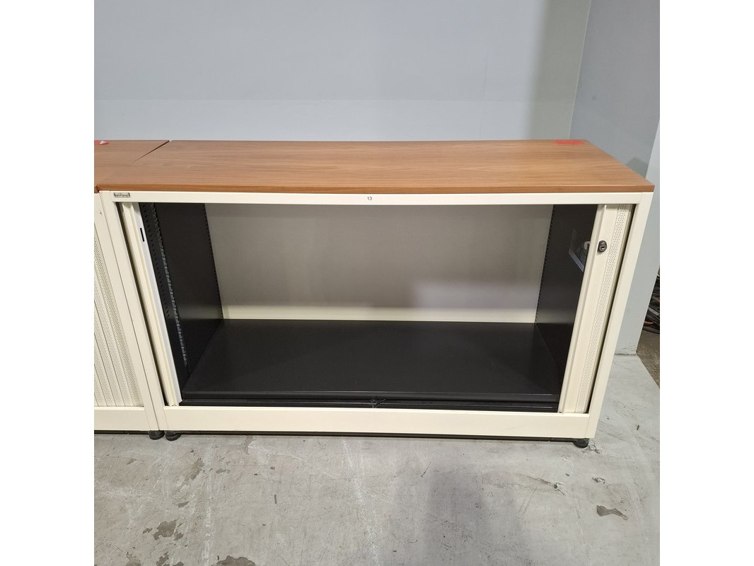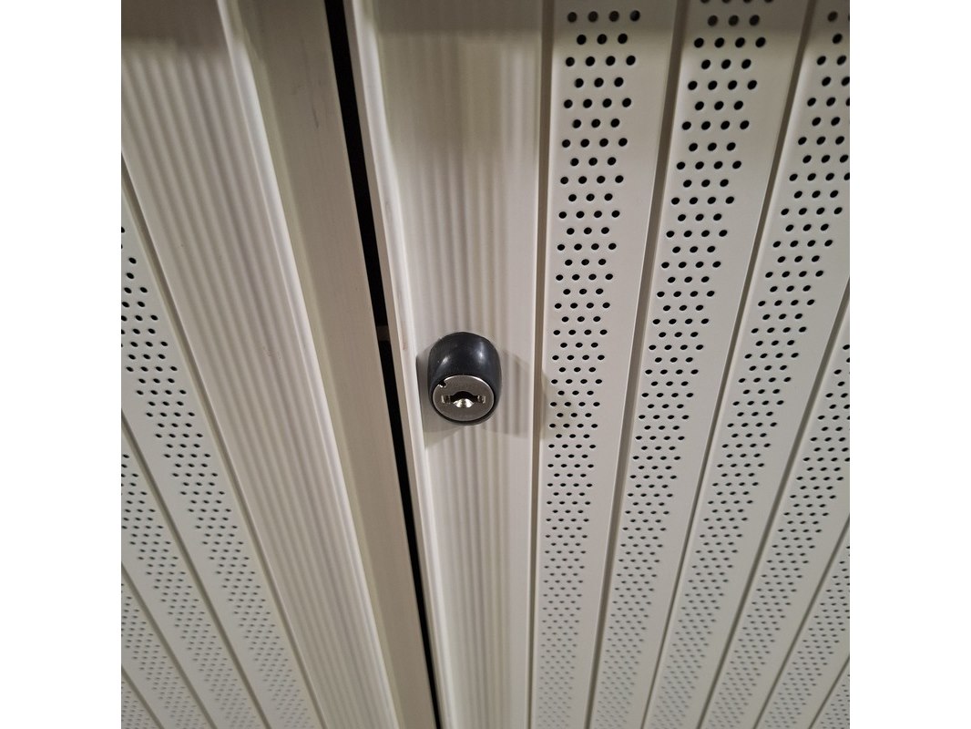Product: Jaloeziekast Afmeting: HxBxD ca. 74x120x45 cm. Conditie: gebruikt Specificaties: De kasten hebben diverse beschadigingen en gebreken. Exclusief sleutels.
