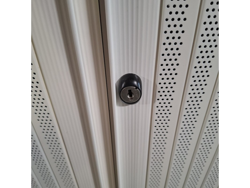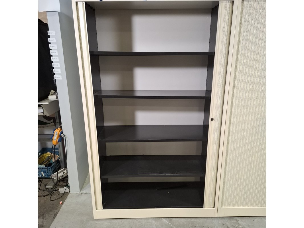 Merk: Ahrend Product: Jaloeziekast Afmeting: HxBxD ca. 195x120x45 cm. Conditie: gebruikt Specificaties: De kasten hebben diverse beschadigingen en gebreken. Exclusief sleutels.