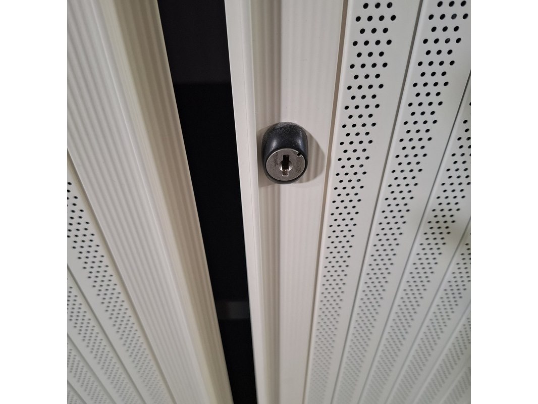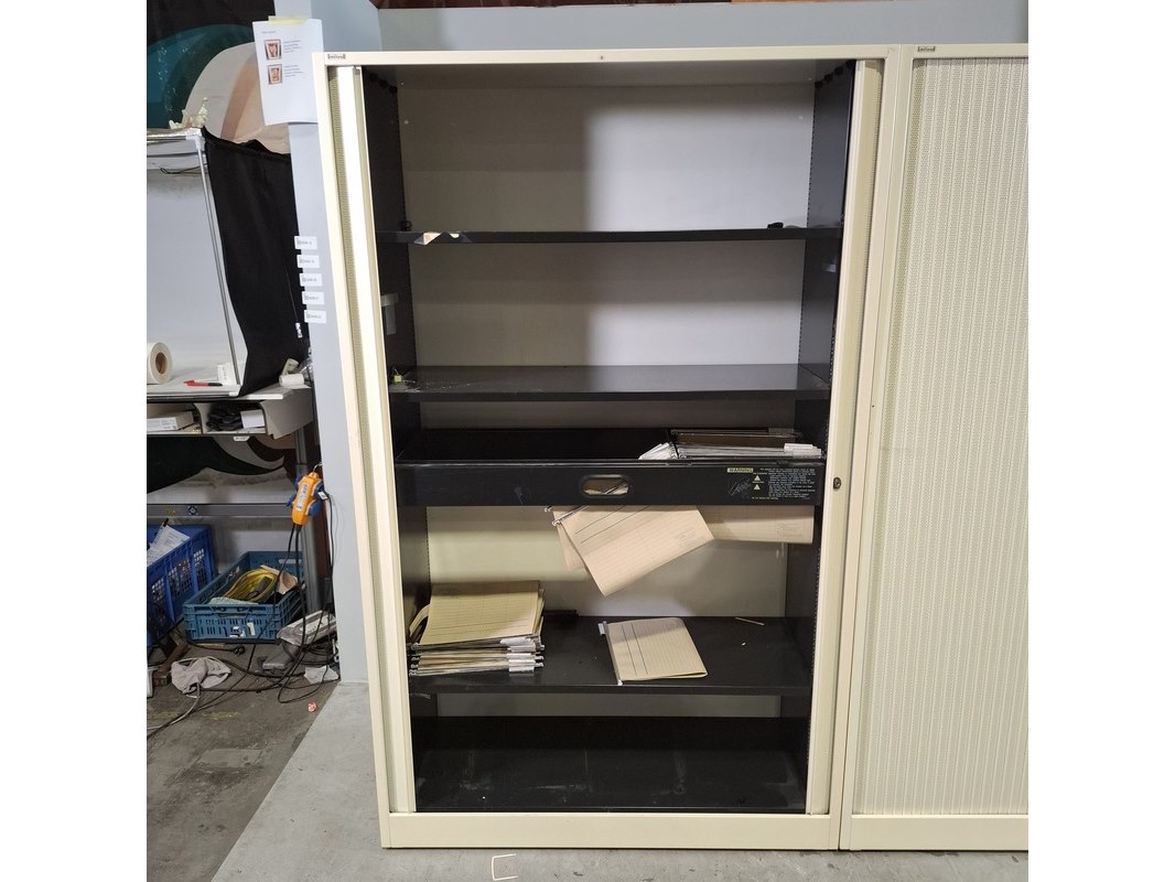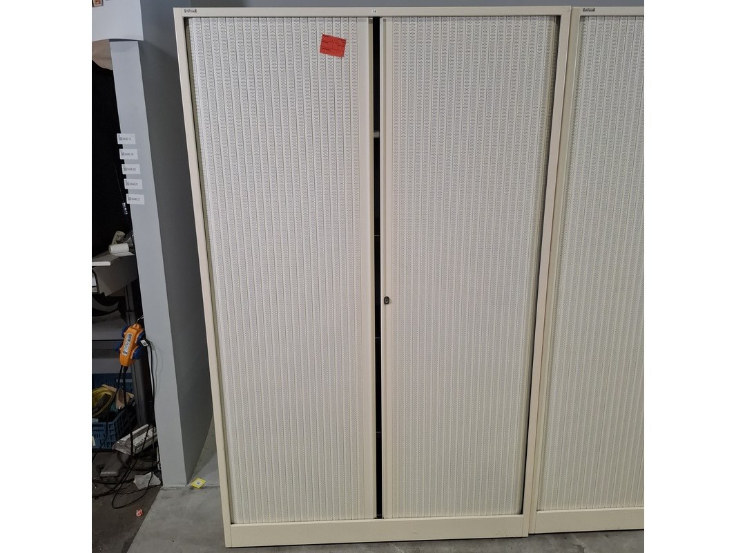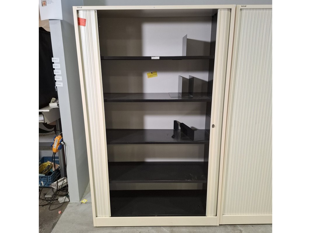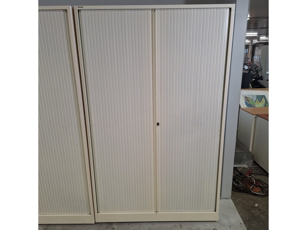 Merk: Ahrend Product: Jaloeziekast Afmeting: HxBxD ca. 195x120x45 cm. Conditie: gebruikt Specificaties: De kasten hebben diverse beschadigingen en gebreken. Exclusief sleutels.