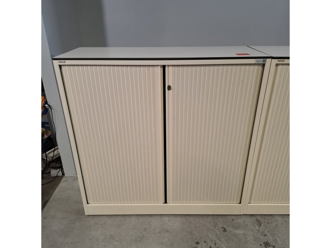Merk: Ahrend Product: Jaloeziekast Afmeting: HxBxD ca. 120x120x45 cm Conditie: gebruikt Specificaties: De kasten hebben diverse beschadigingen en gebreken. Exclusief sleutels.
