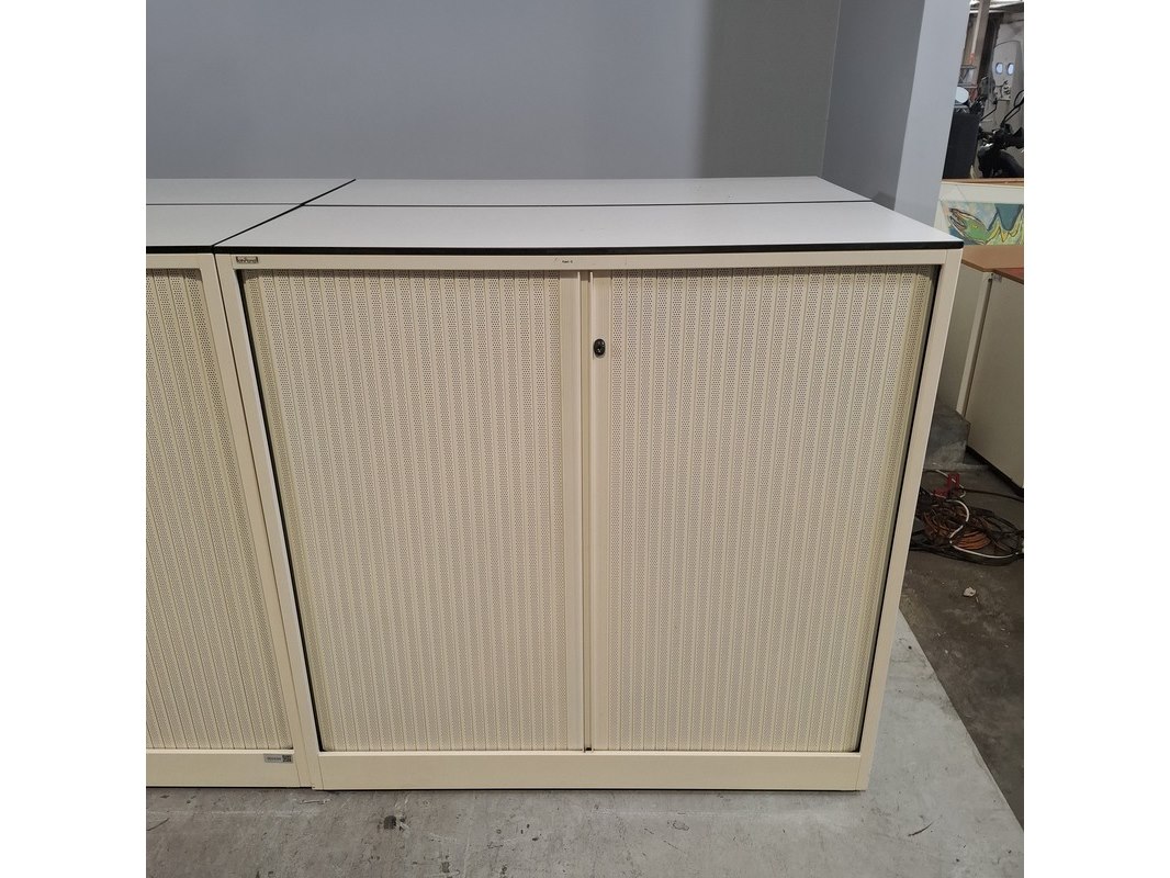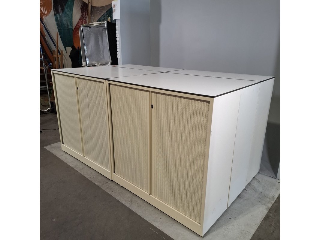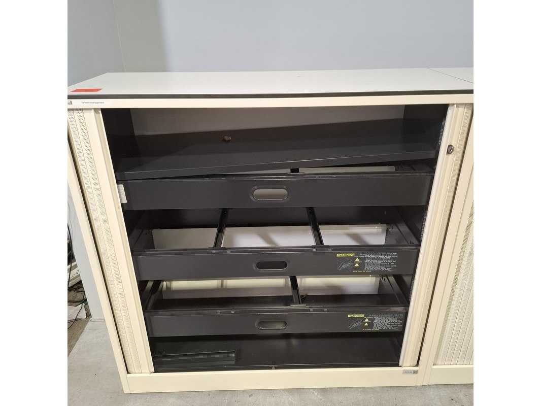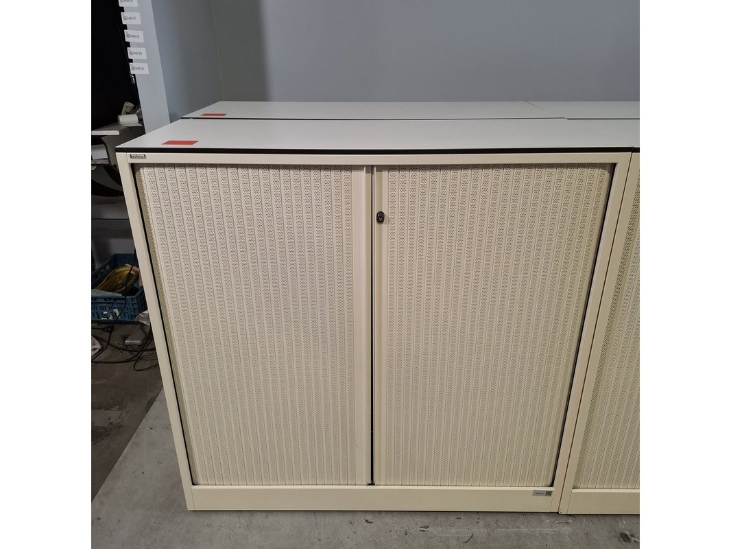 Merk: Ahrend Product: Jaloeziekast Afmeting: HxBxD ca. 120x120x45 cm Conditie: gebruikt Specificaties: De kasten hebben diverse beschadigingen en gebreken. Exclusief sleutels.