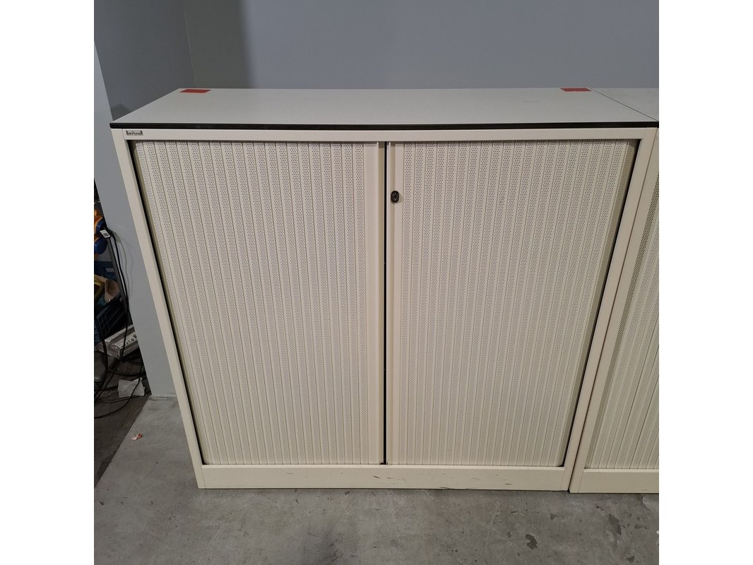 Merk: Ahrend Product: Jaloeziekast Afmeting: HxBxD ca. 120x120x45 cm Conditie: gebruikt Specificaties: De kasten hebben diverse beschadigingen en gebreken. Exclusief sleutels.