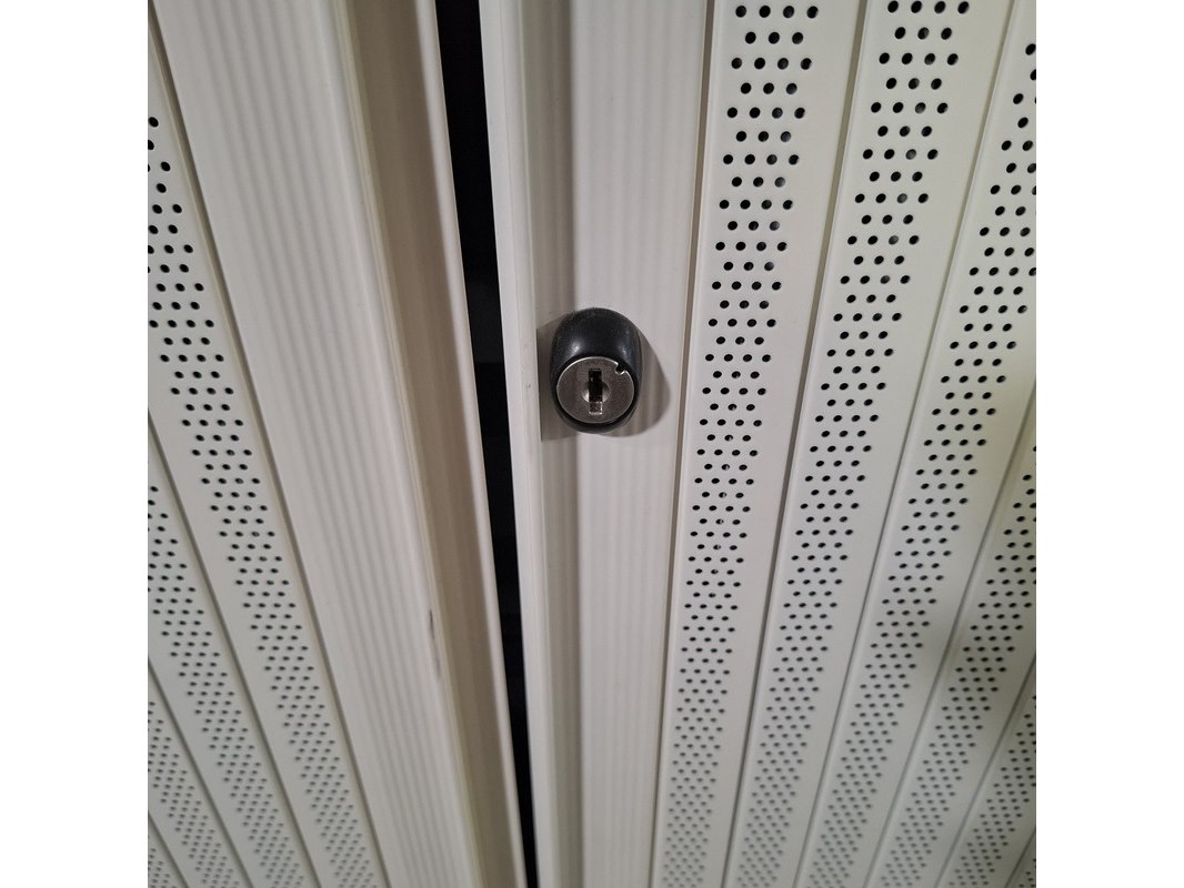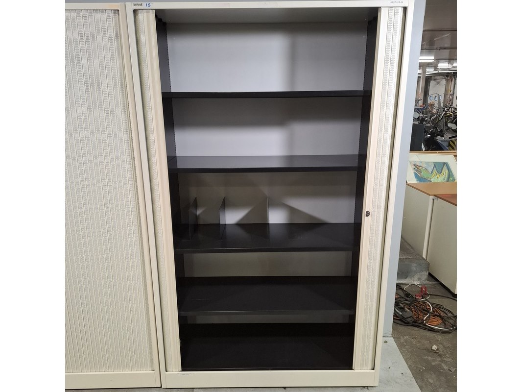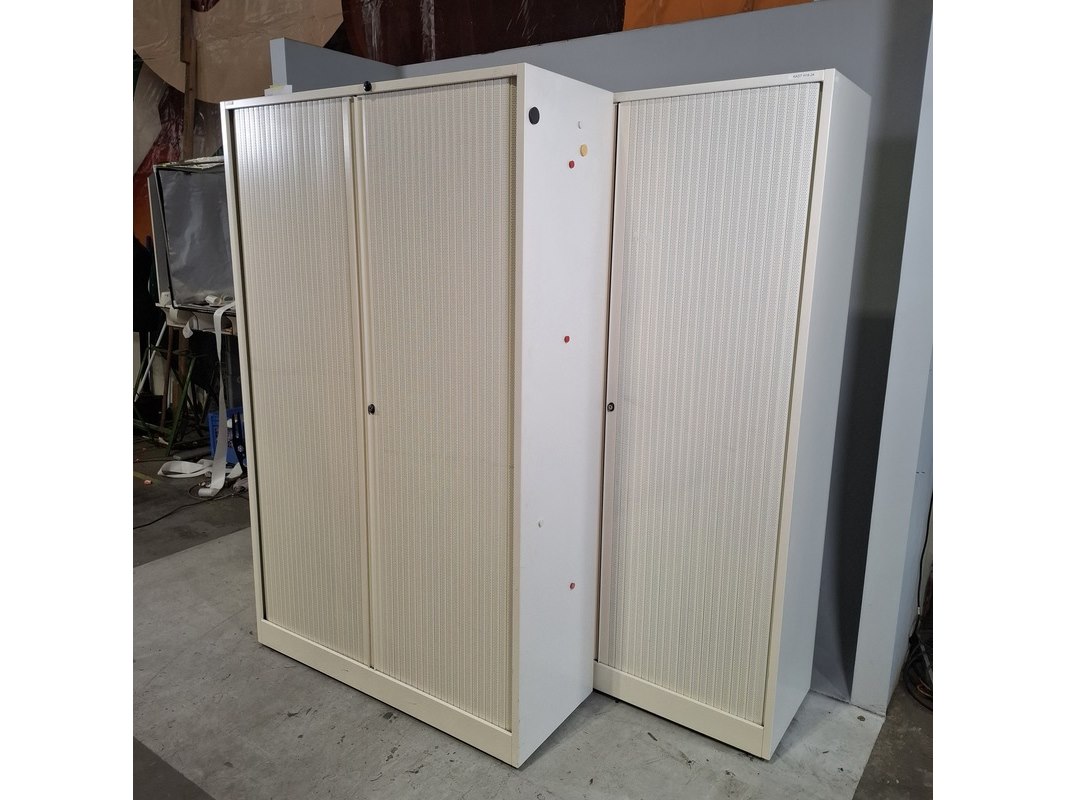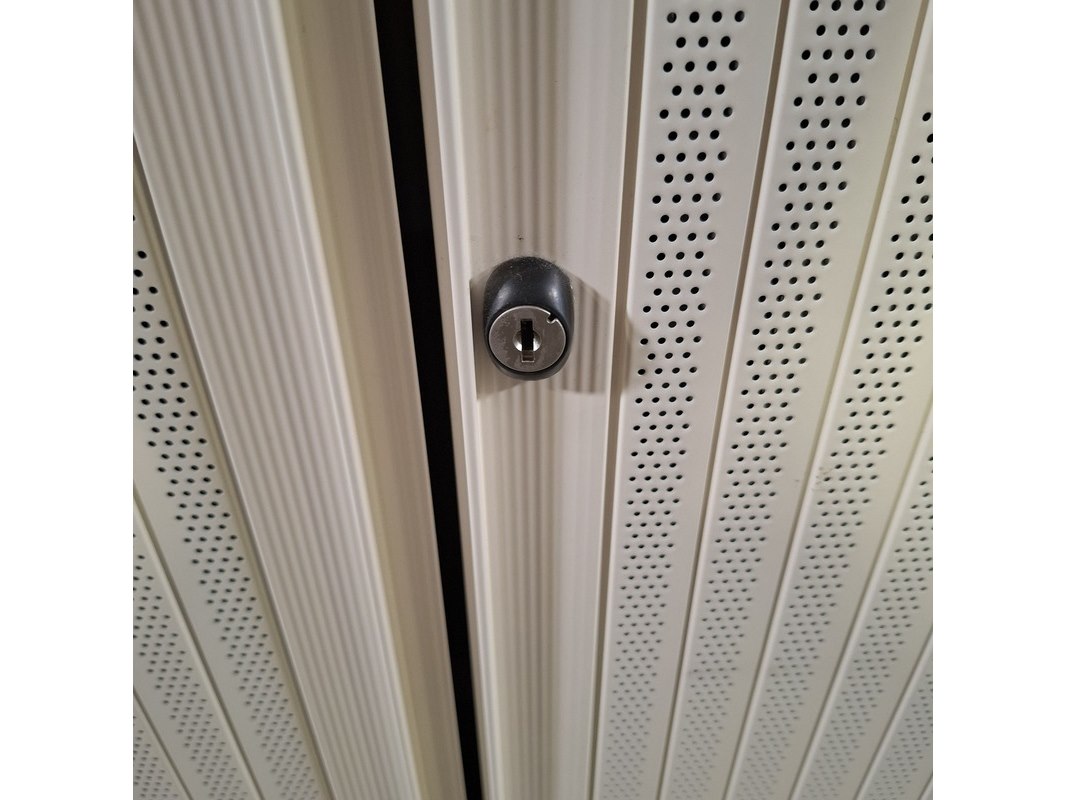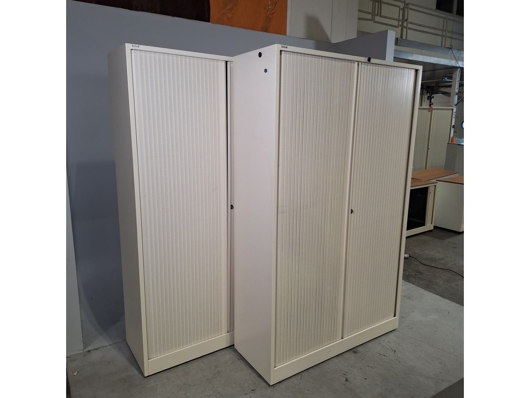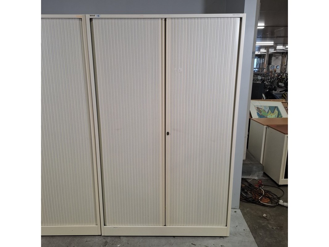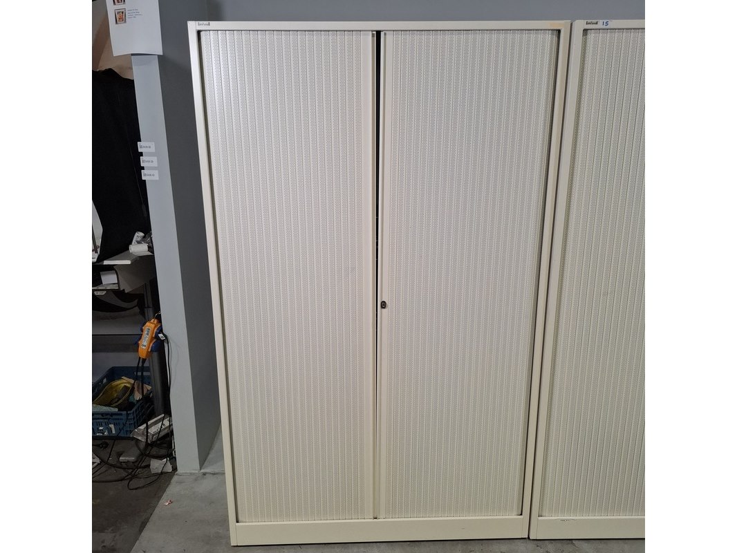 Merk: Ahrend Product: Jaloeziekast Afmeting: HxBxD ca. 195x120x45 cm. Conditie: gebruikt Specificaties: De kasten hebben diverse beschadigingen en gebreken. Exclusief sleutels.
