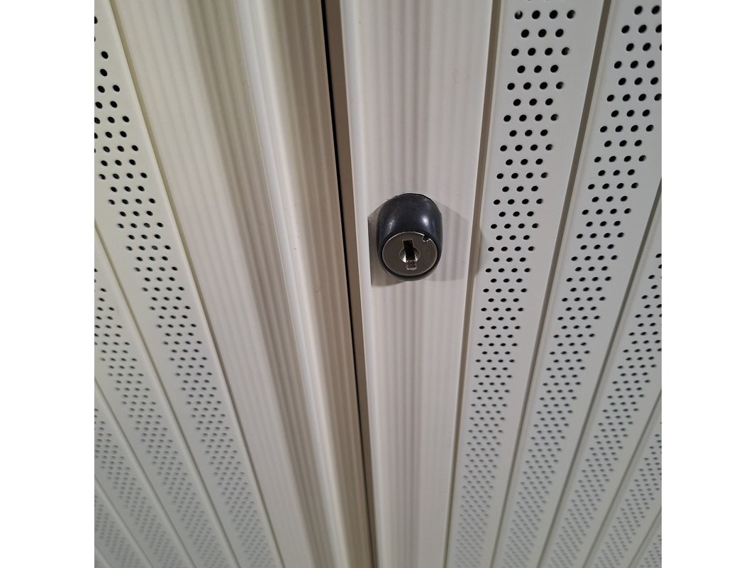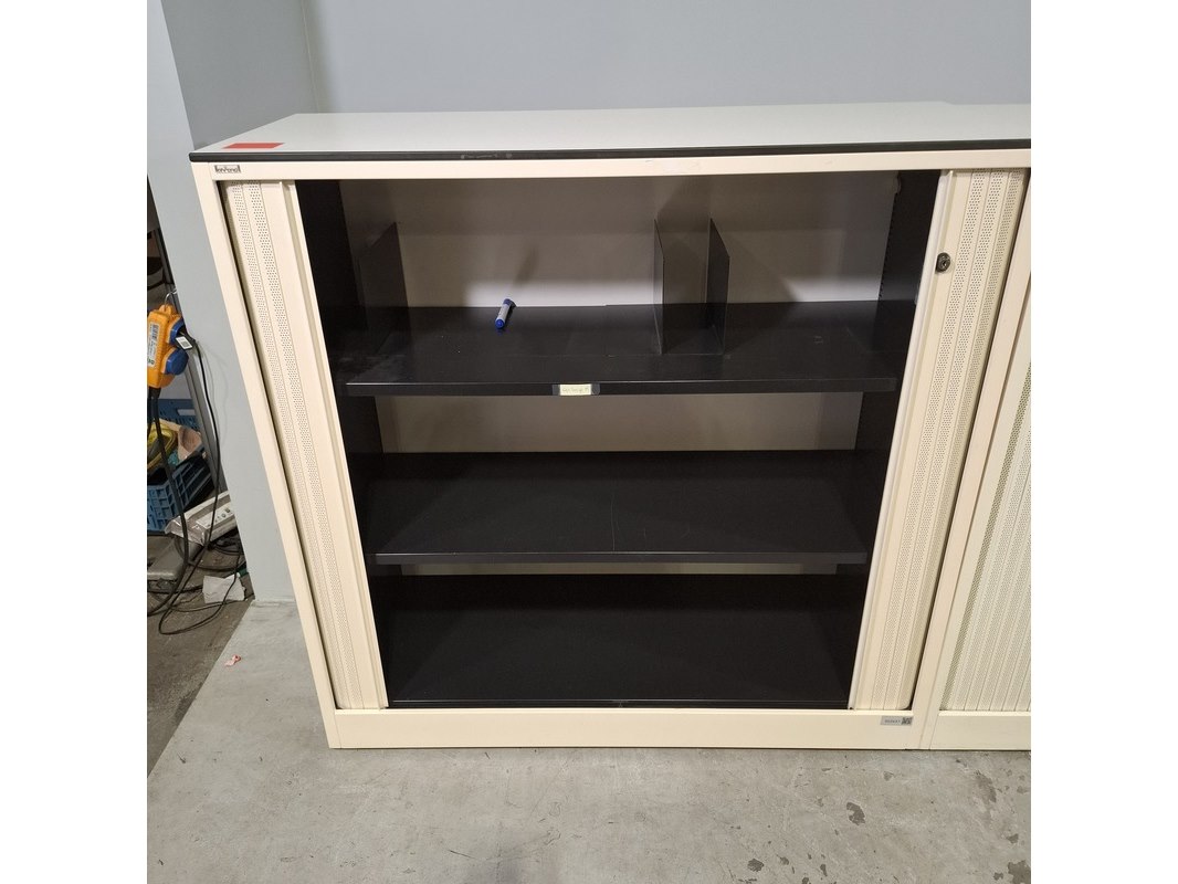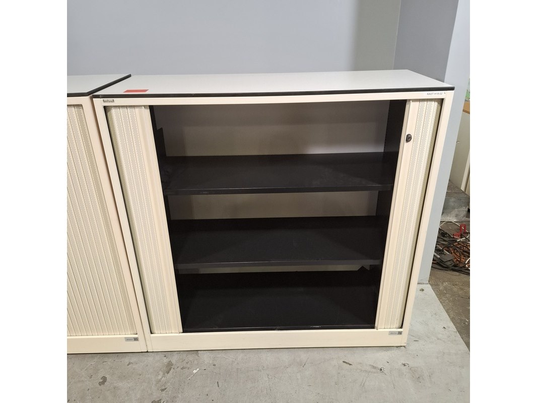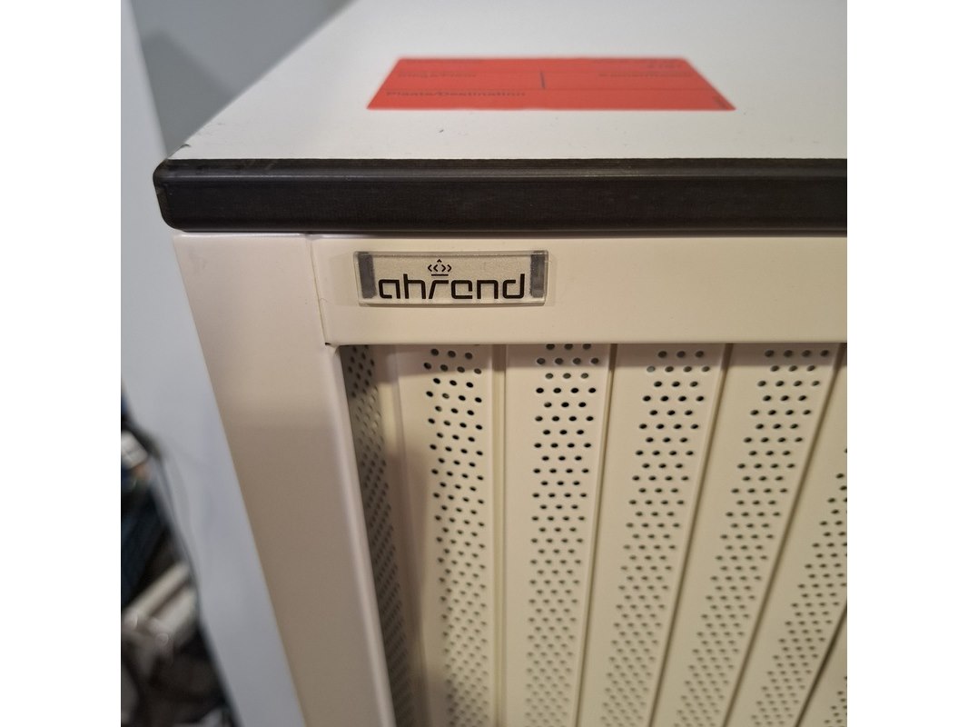Merk: Ahrend Product: Jaloeziekast Afmeting: HxBxD ca. 120x120x45 cm Conditie: gebruikt Specificaties: De kasten hebben diverse beschadigingen en gebreken. Exclusief sleutels.