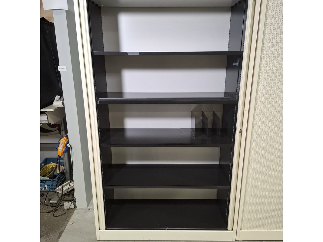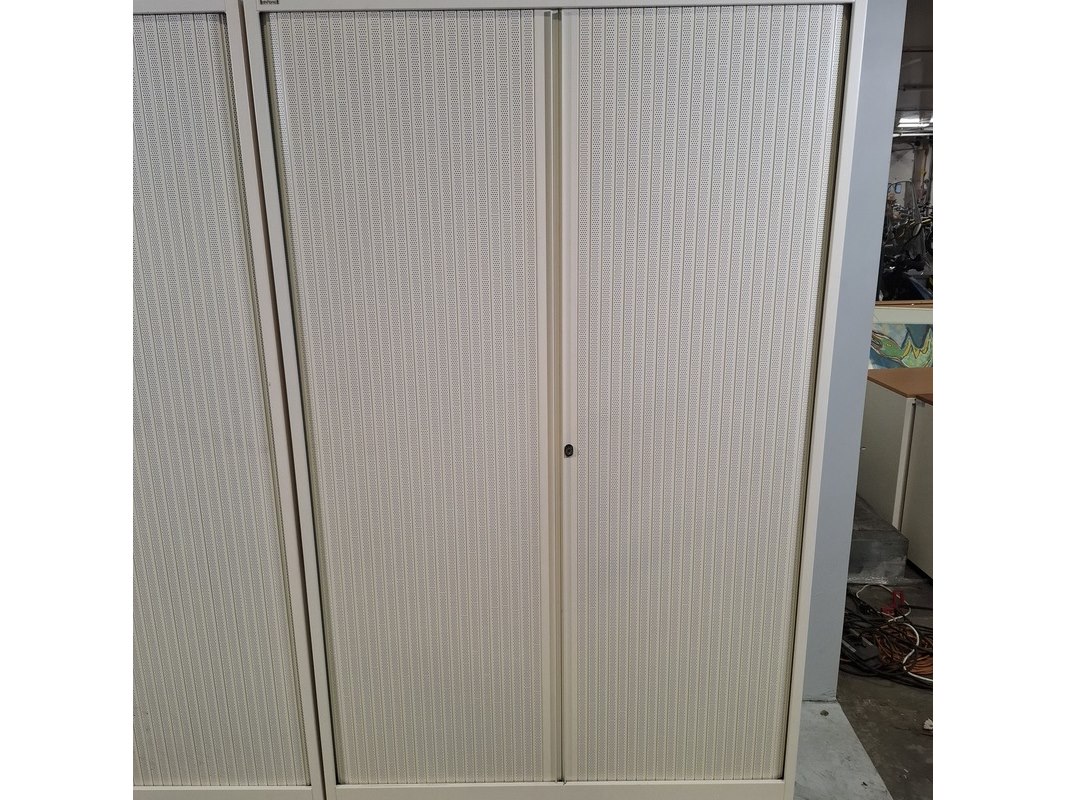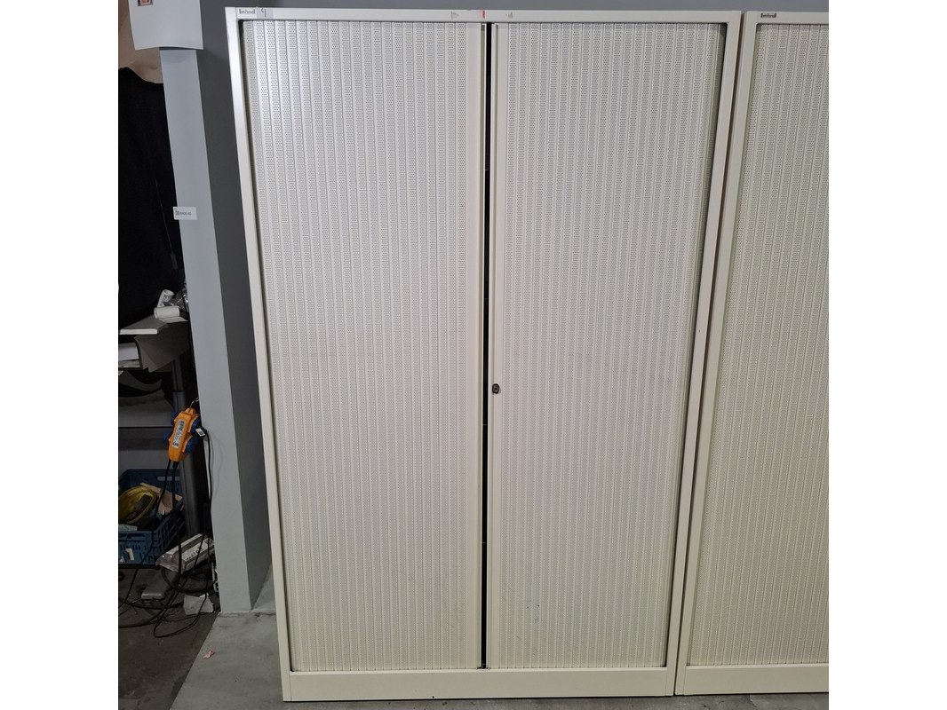 Merk: Ahrend Product: Jaloeziekast Afmeting: HxBxD ca. 195x120x45 cm. Conditie: gebruikt Specificaties: De kasten hebben diverse beschadigingen en gebreken. Exclusief sleutels.