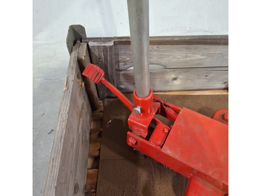 Merk: OMCN Product: Garagekrik Afmeting: Lengte ca. 130 cm. Conditie: gebruikt Specificaties: Max. 2000 Kg. Heft en zakt niet Verdere technische staat en compleetheid onbekend.