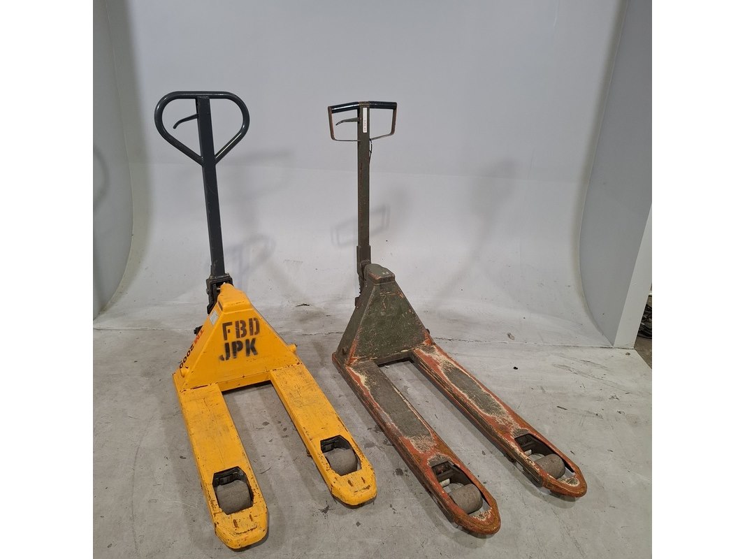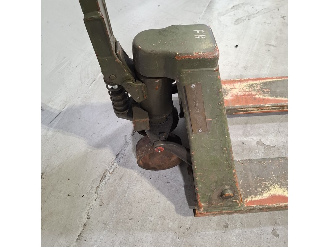 Merk: o.a Ameise Product: Palletwagen Afmeting: o.a Lepellengte ca. 80 cm. Conditie: gebruikt Specificaties: 1x Ameise TM2000 Lepellengte ca. 80 cm. Max. 2000 Kg. Gewicht ca. 72 Kg. Bouwjaar: 1997 Heft en zakt niet Verdere technische staat en compleetheid onbekend 1x palletwagen Typeplaat ontbreekt Lepellengte ca. 100 cm. Heft en zakt niet Verdere technische staat en compleetheid onbekend