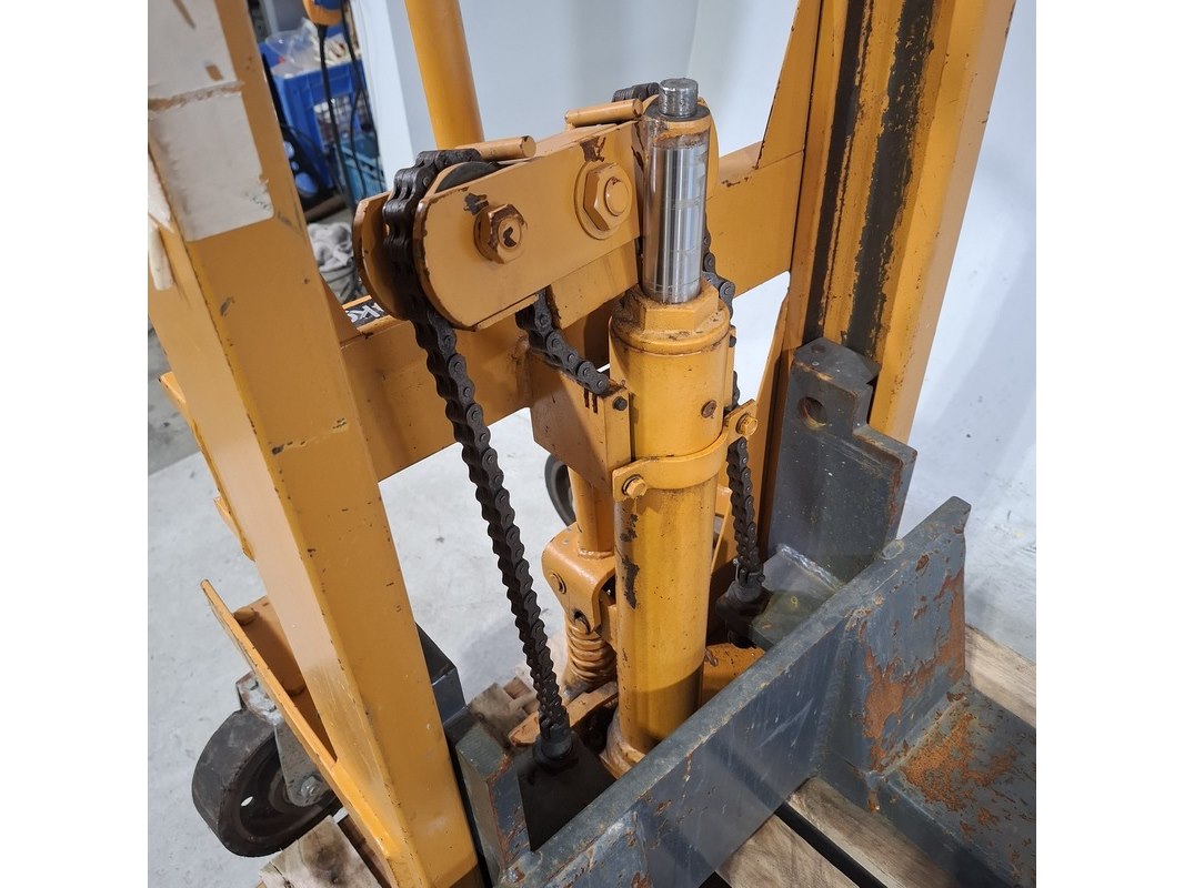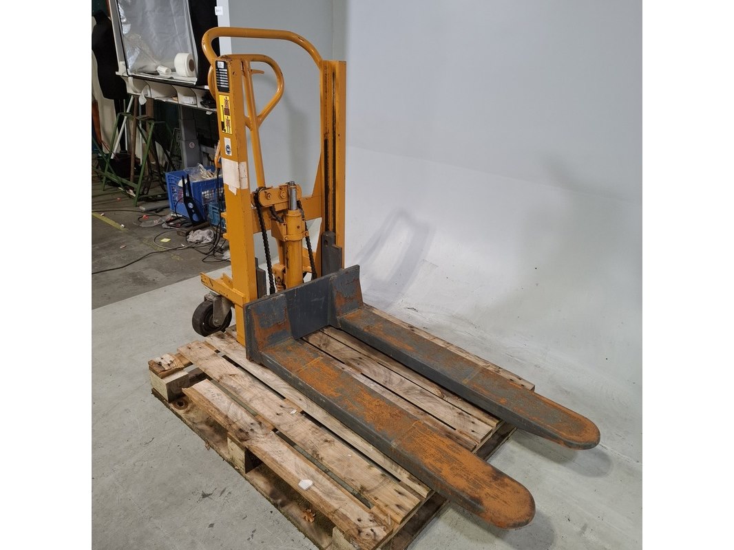 Product: Hoogheffende palletwagen Afmeting: Lepellengte ca. 115 cm. BouwJaar: 1994 Conditie: gebruikt Specificaties: Maximale draaglast ca. 1500 Kg. Eigen gewicht ca. 265 Kg. Hefgedeelte van kogel af Heft en zakt niet Verdere technische staat en compleetheid onbekend.