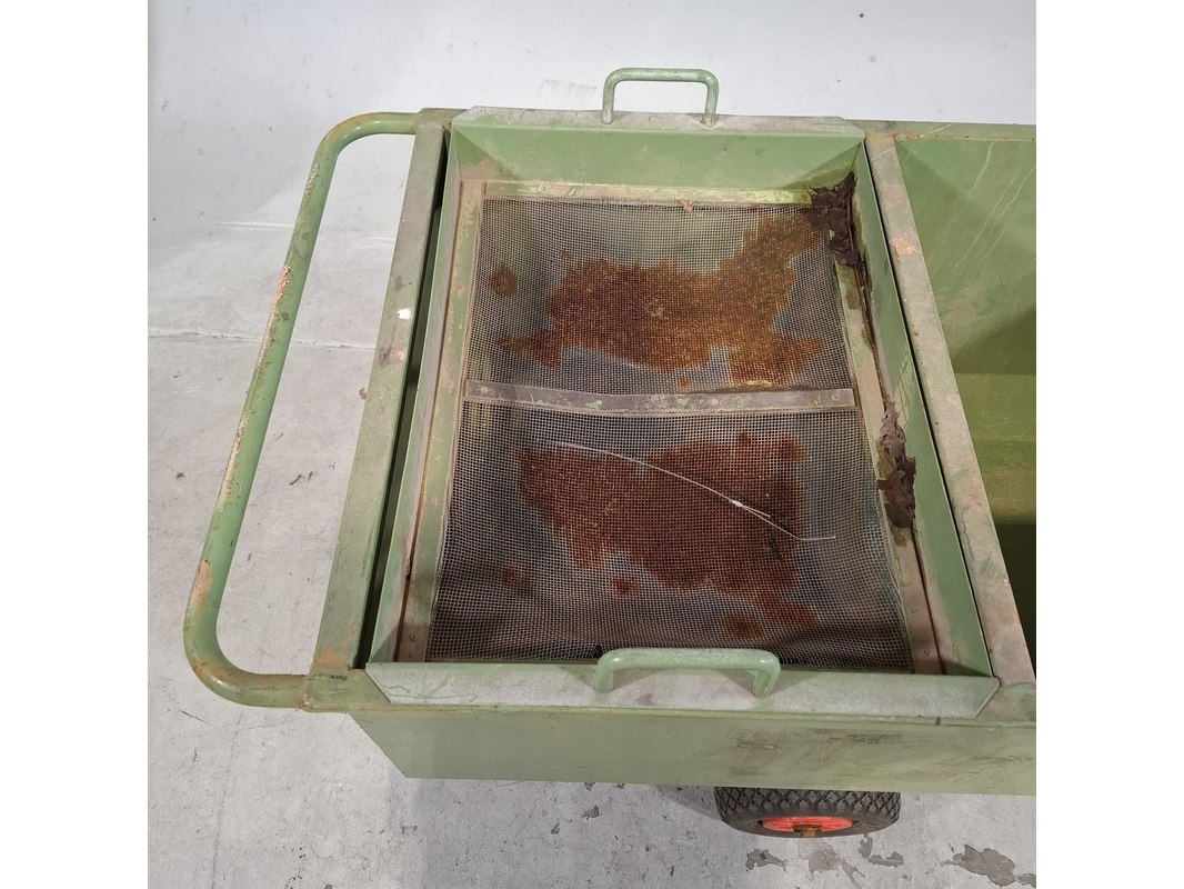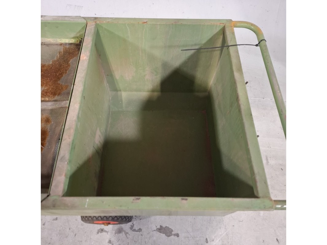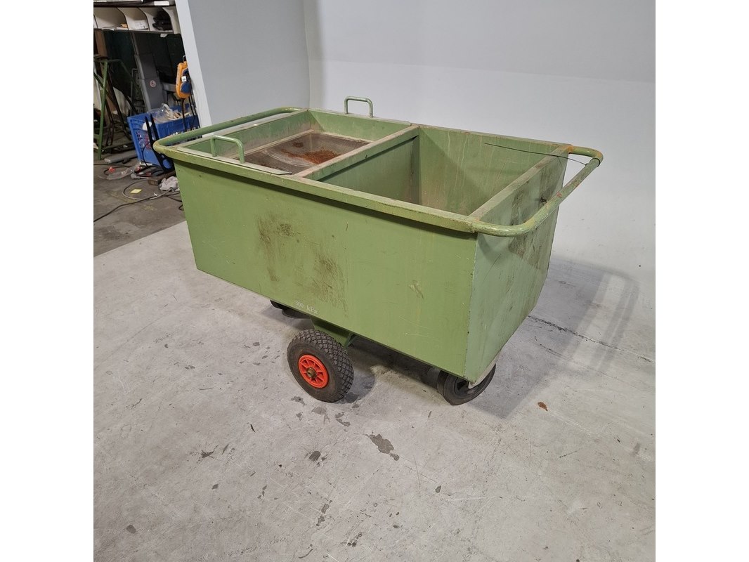 Product: Verdeelwagen Afmeting: LxBxH ca. 120x65x76 cm. Conditie: gebruikt Specificaties: Bandjes lek. Technische staat en compleetheid onbekend.