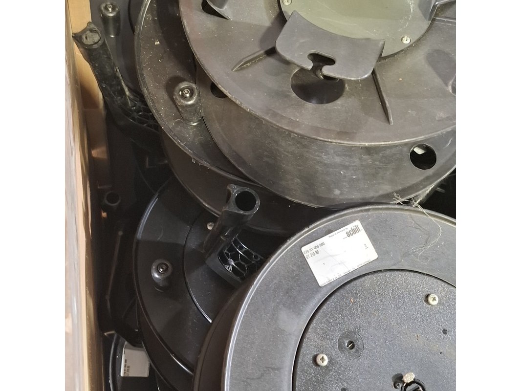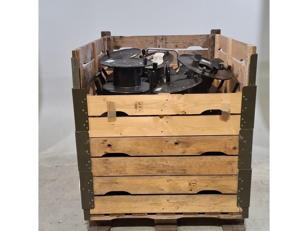 Product: Partij diverse haspels Afmeting: Diverse maten Conditie: gebruikt Specificaties: Bestaande uit diverse haspels in verschillende maten. Technische staat en compleetheid onbekend. Exclusief palletkist.