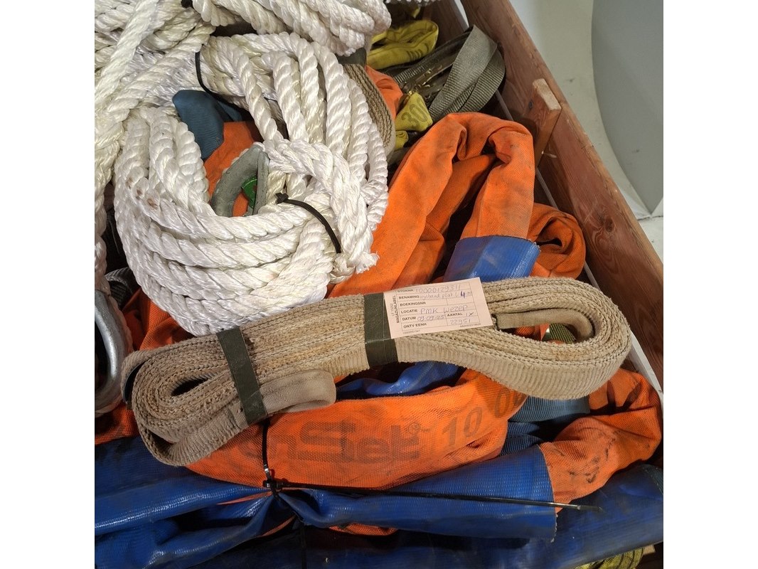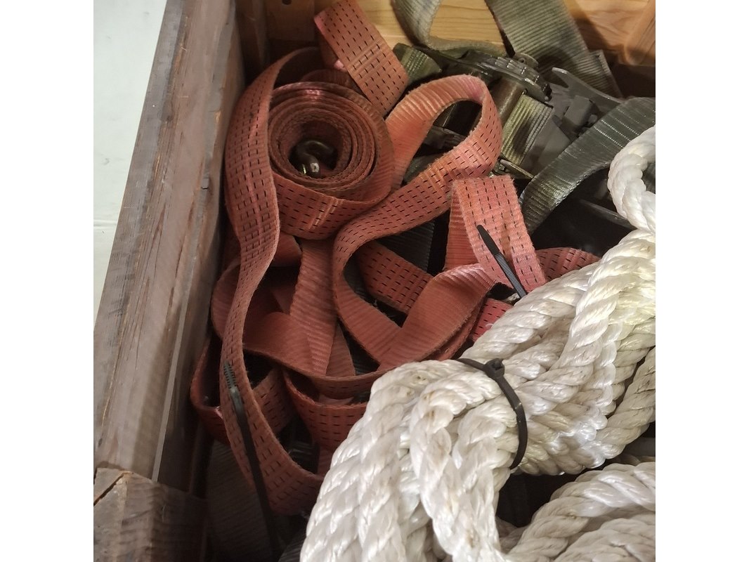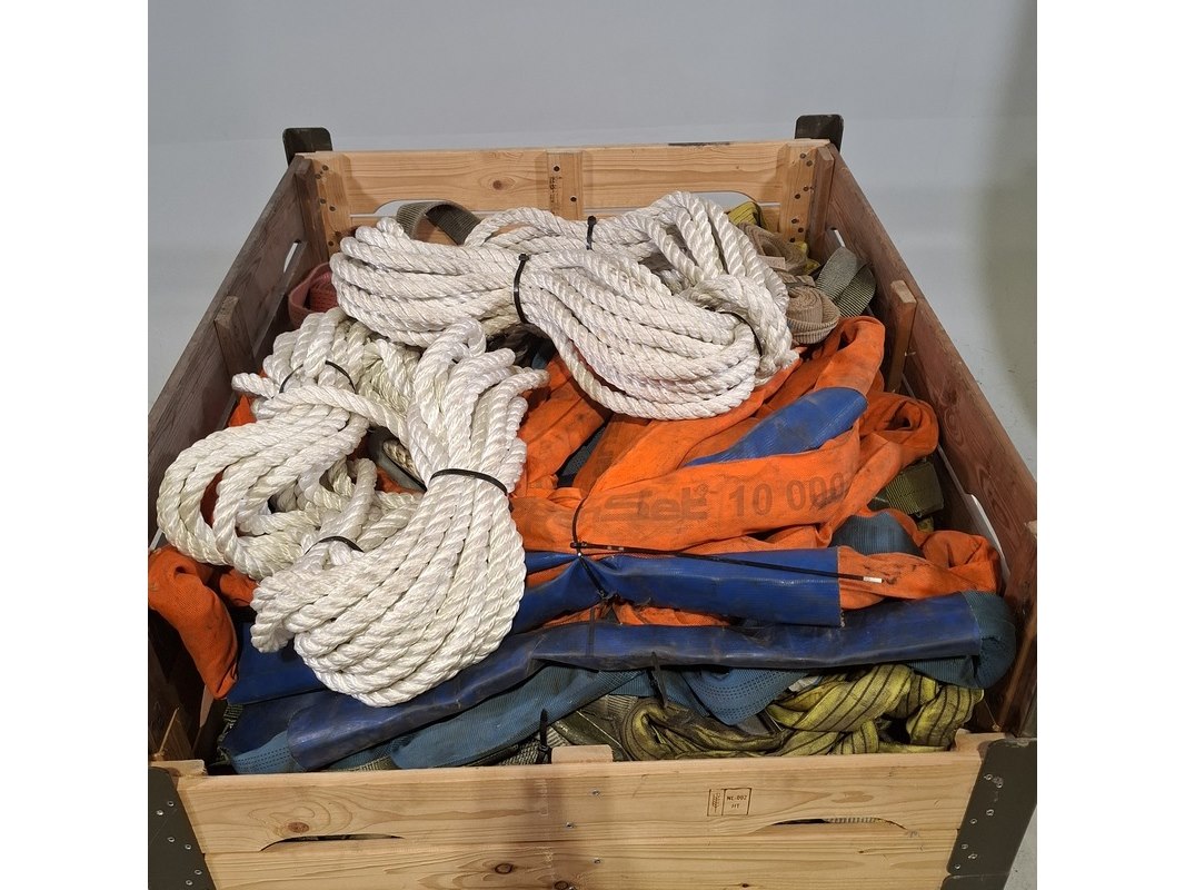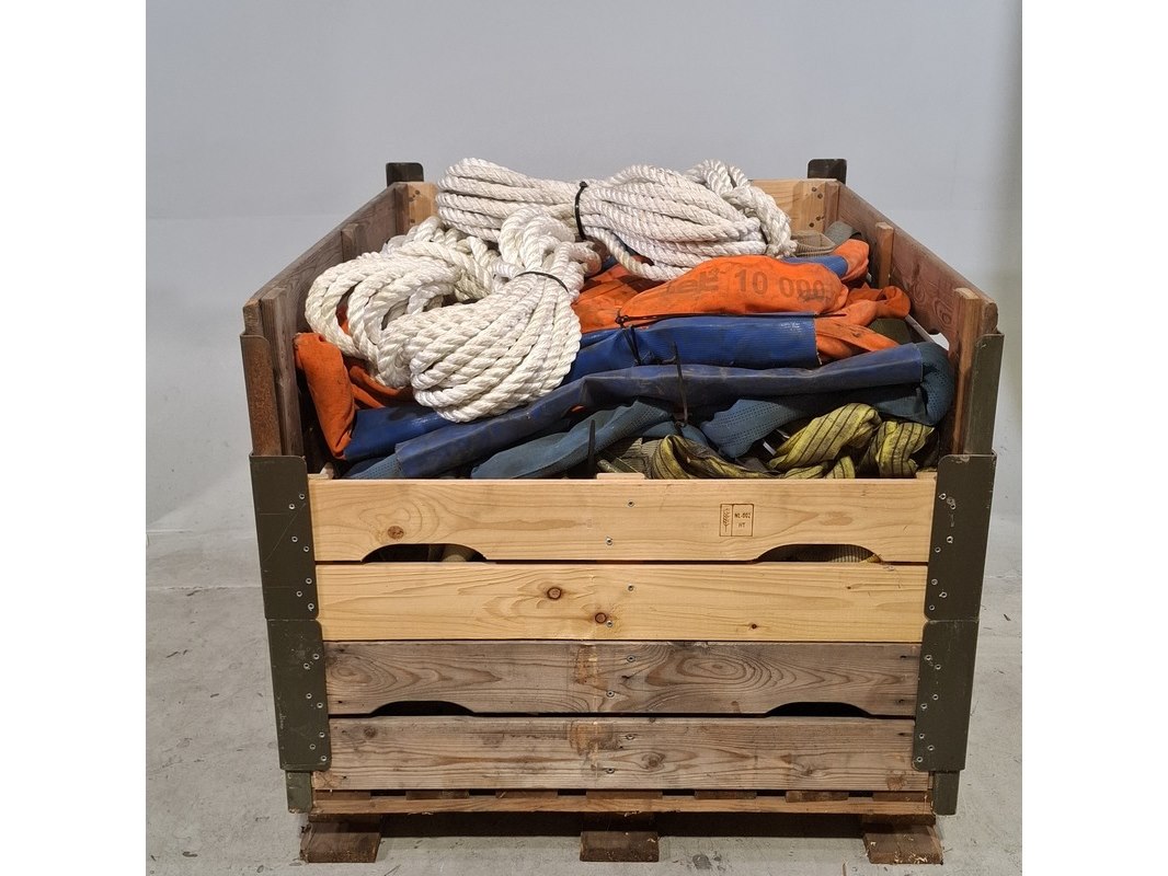 Product: Diverse hijs en spanbanden Afmeting: Diverse maten Conditie: gebruikt Specificaties: Bestaande uit hijs en spanbanden in diverse soorten en maten. Technische staat en compleetheid onbekend. Exclusief palletkist.