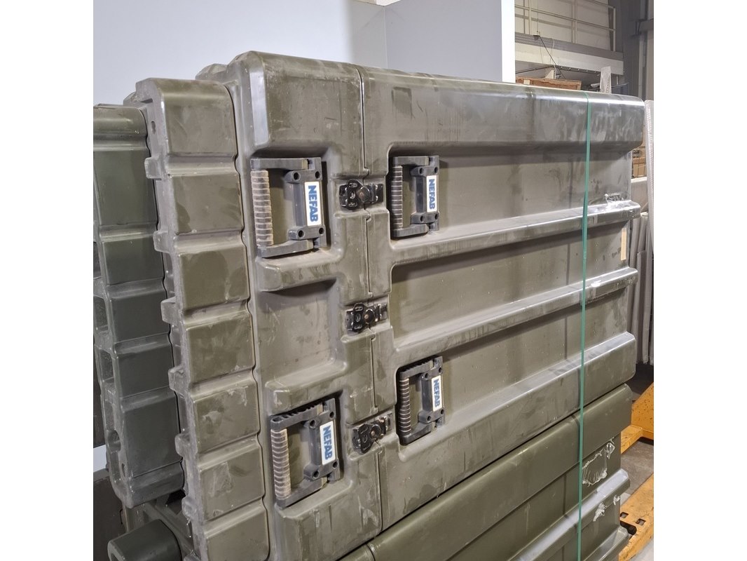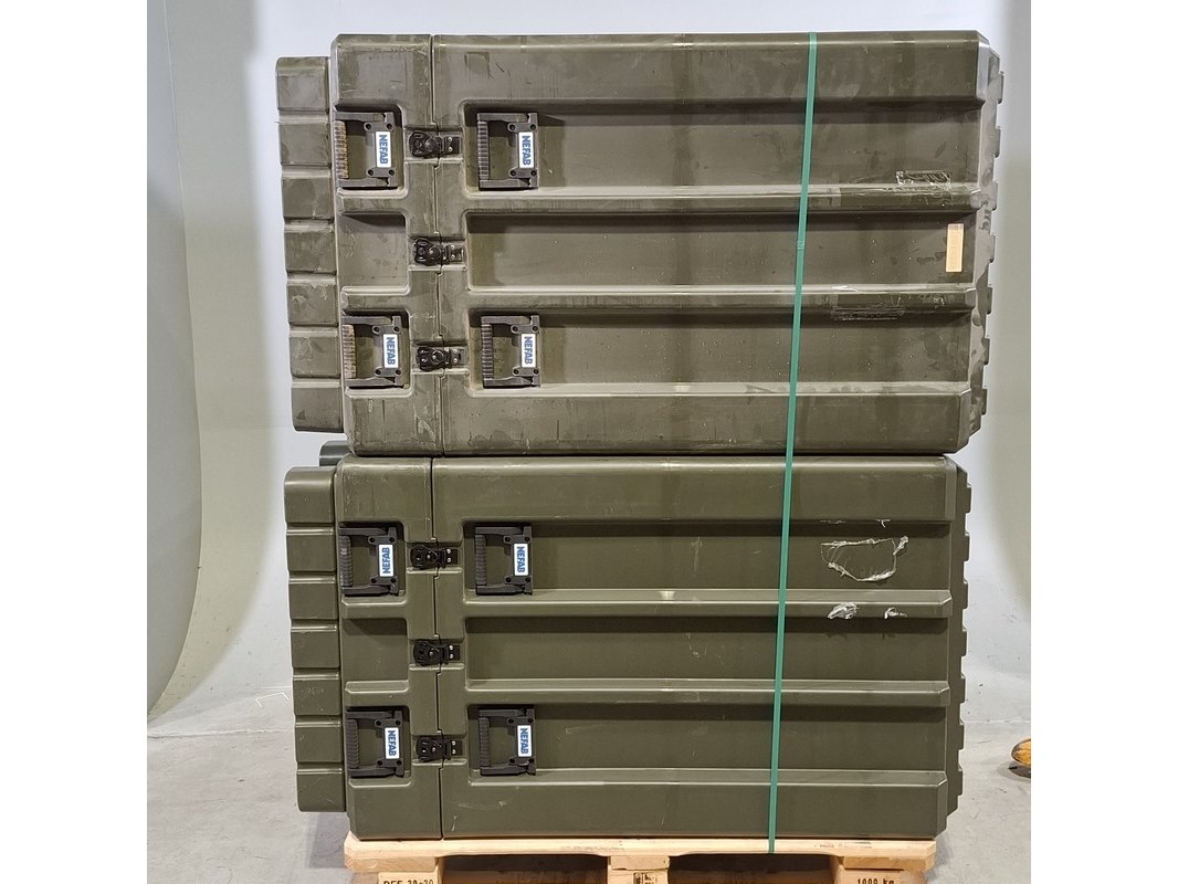 Merk: Nefab Product: Transportkist Afmeting: HxBxD ca. 140x79x79 cm. Conditie: gebruikt Specificaties: De transportkisten hebben diverse beschadigingen. Technische staat en compleetheid onbekend. Exclusief pallet.