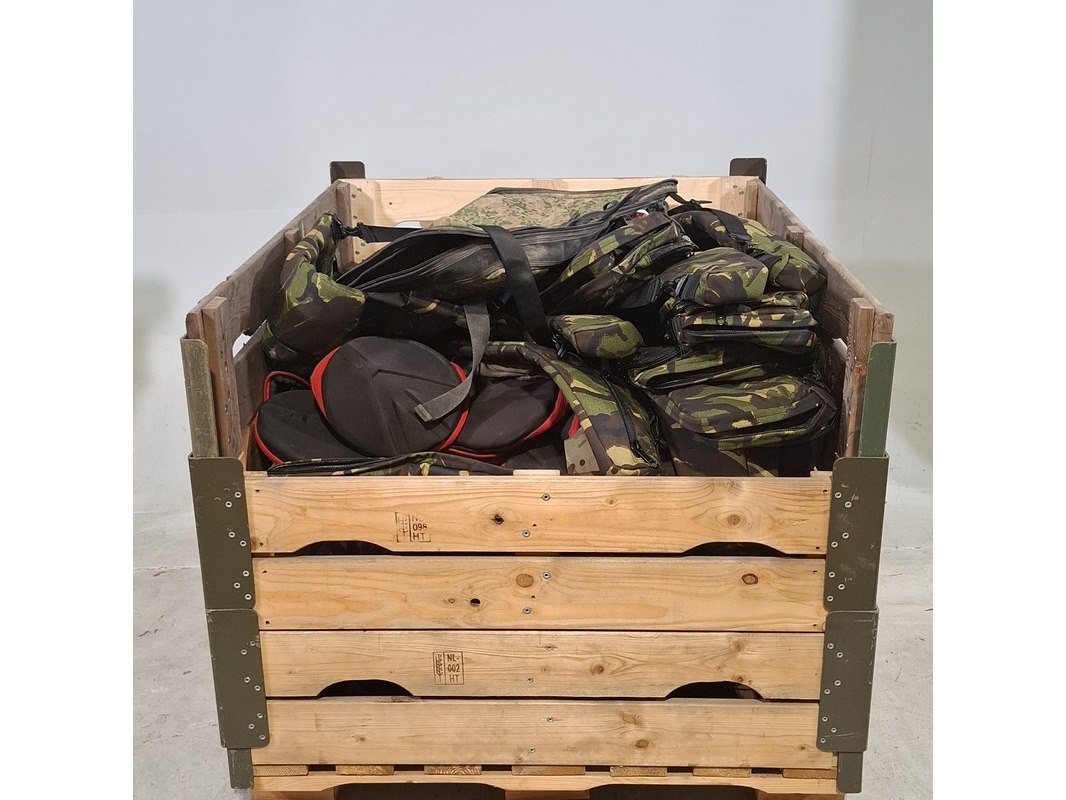 Product: Partij diverse tassen Afmeting: Diverse maten Conditie: gebruikt Specificaties: Bestaande uit diverse tassen in verschillende soorten en maten. Technische staat en compleetheid onbekend. Exclusief palletkist.