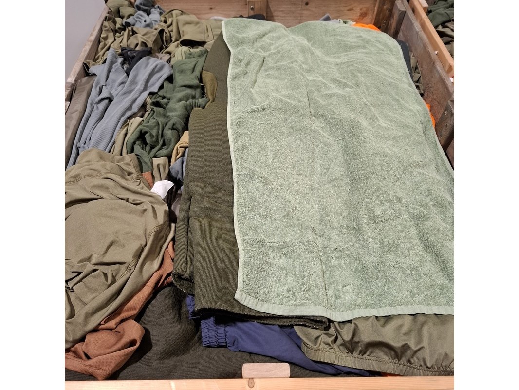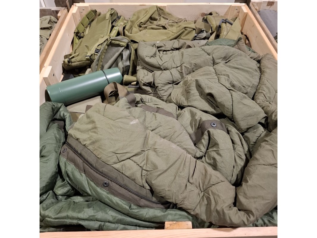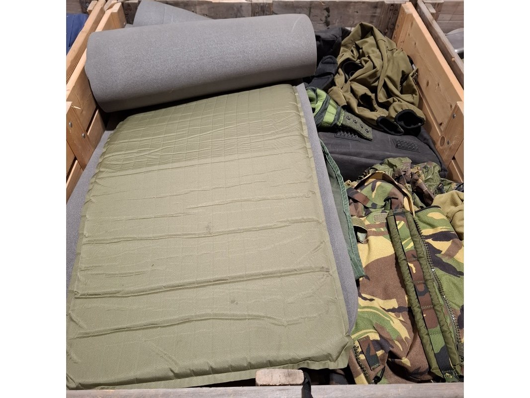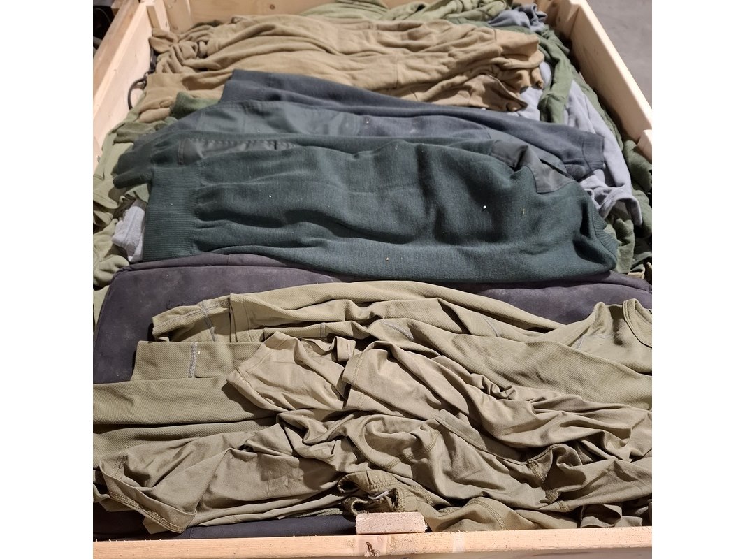 Product: Persoonlijke uitrusting en kleding Defensie Specificaties: Bestaande uit ca. 29x palletbox ongesorteerde artikelen.