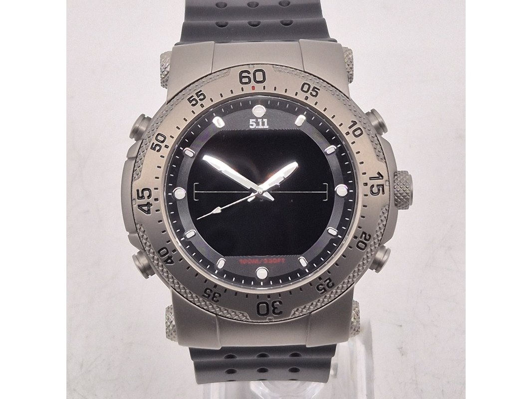 Merk: HRT 5.11 Product: Tactical Titanium Horloge Specificaties: Met lederen en rubberen band In opbergmap Werking en compleetheid onbekend