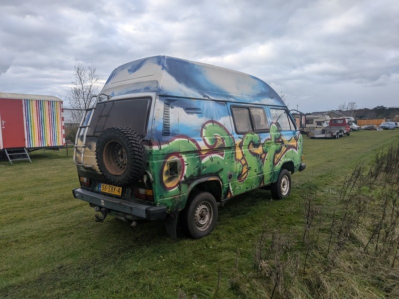 Merk: Volkswagen Product: Camperbus 4x4 BouwJaar: 1988 Conditie: gebruikt Specificaties: Basiskenmerken Kenteken: 56-SBK-4 Afgelezen tellerstand: 40.049 km APK is geldig tot 02-10-2027 Staat en werking Omgebouwd met 1.9 TDI uit een Golf 3 (mechanisch gemaakt), uitgerust met slechtwegenpakket, dubbele sper, stuurbekrachtiging, synchro. Start en loopt. Video https://youtu.be/qeMHyEGKQk0