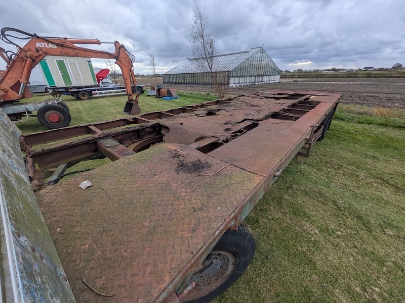 Product: Schamelwagen Afmeting: afmeting laadvloer (lxb) ca. 246 x 700 cm Conditie: gebruikt Specificaties: Zonder kenteken