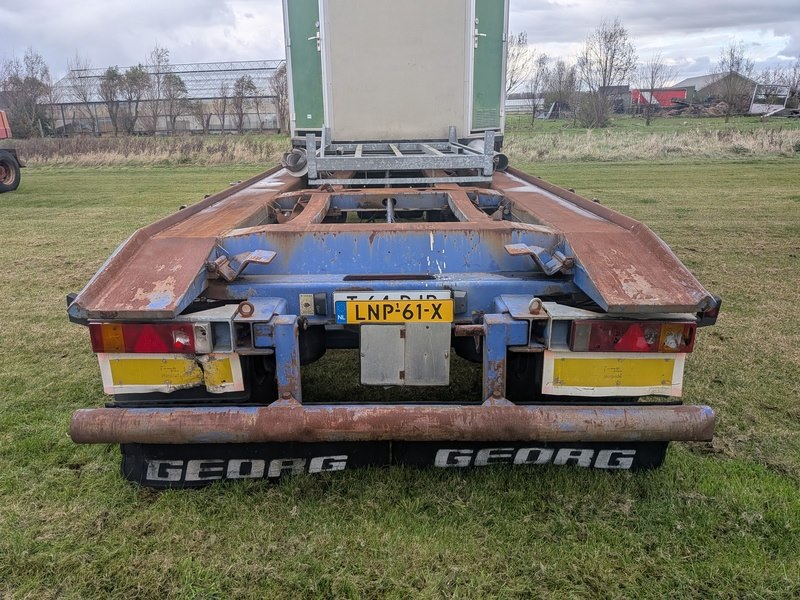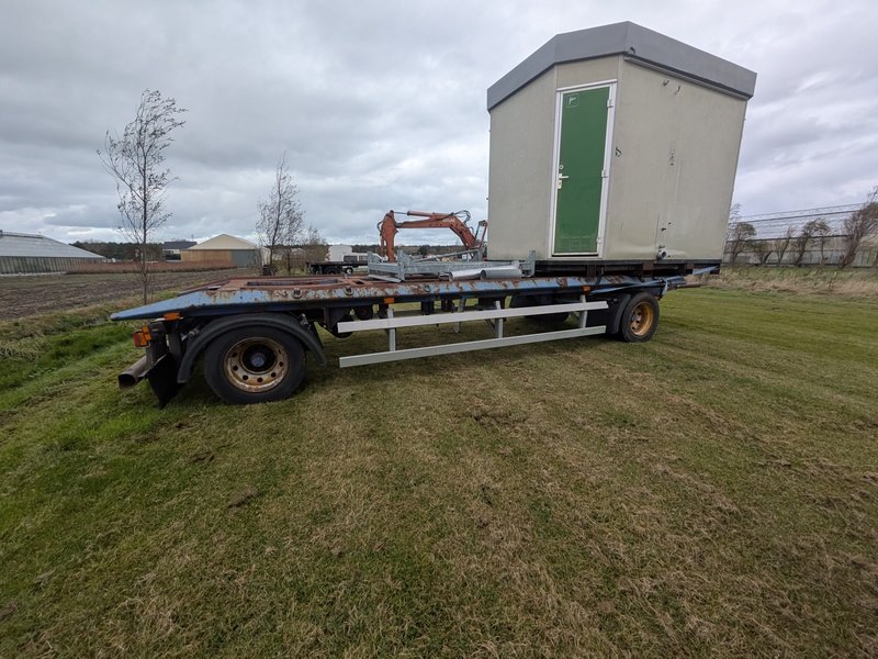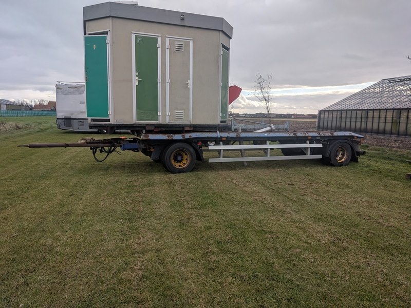 Merk: Georg Product: Schamelwagen BouwJaar: 2001 Conditie: gebruikt Specificaties: Kenteken: LNP-61-X Totale afmeting (lxb) ca. 996 x 267 cm Excl. sanitair unit (kavel 24)
