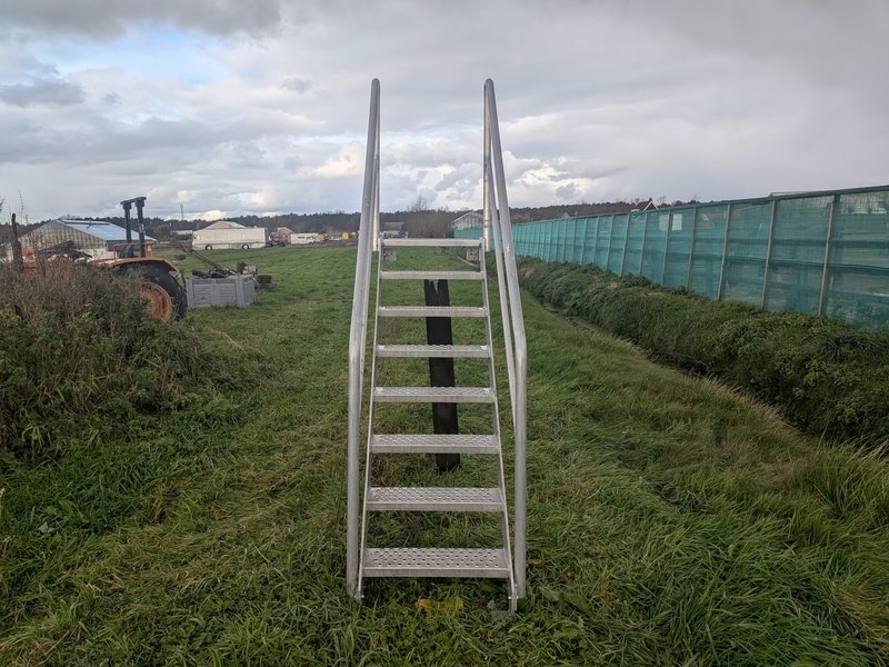 Product: Aluminium trap 8-treeds Afmeting: opstelling (lxbxh) ca. 165 x 73 x 238 cm Conditie: gebruikt Specificaties: hoogste trede ca. 1.56m