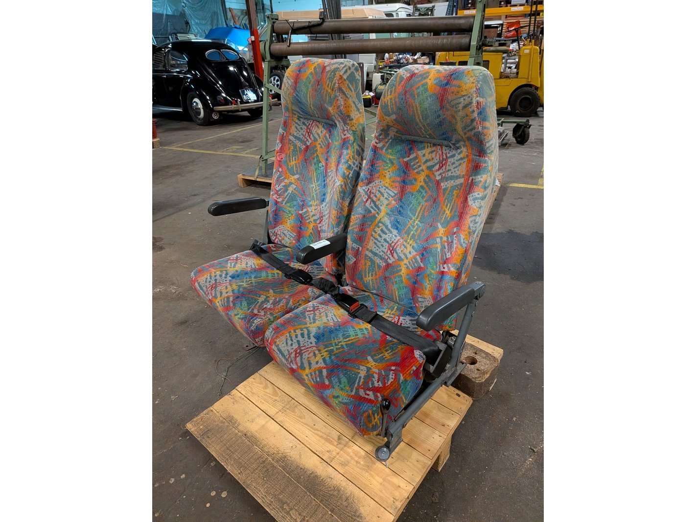 Product: 2-zits busbank Afmeting: Zithoogte ca. 43 cm Conditie: gebruikt Specificaties: Twee dubbele busstoelen (2-zitsbanken) uit een touringcar, ideaal als inbouwproject voor bijvoorbeeld een camperbus. Basiskenmerken - De kavel bestaat uit twee 2-zitsbanken afkomstig uit een touringcar/bus (zie kavel 2) - De stoelen zijn onderling hetzelfde, met één verschil: bij één bank zit de steunpoot links, bij de andere rechts. Constructie Op de foto's zie je een voorbeeld van een 2-zitsbank met de steunpoot links. Oorspronkelijk rustte de andere kant op een balk. Dit maakt ze geschikt voor vaste montage op een eigen balk/frame in een zelfbouwinterieur. Ze zijn bijzonder geschikt als basis voor een zitplaats in een zelfbouw-camperbus of ander DIY-interieurproject.