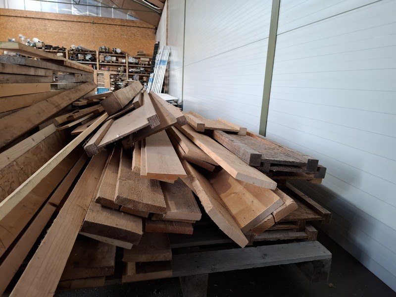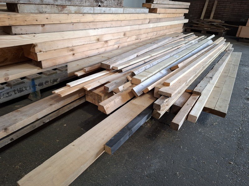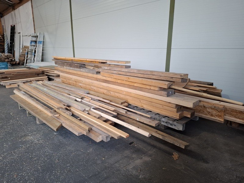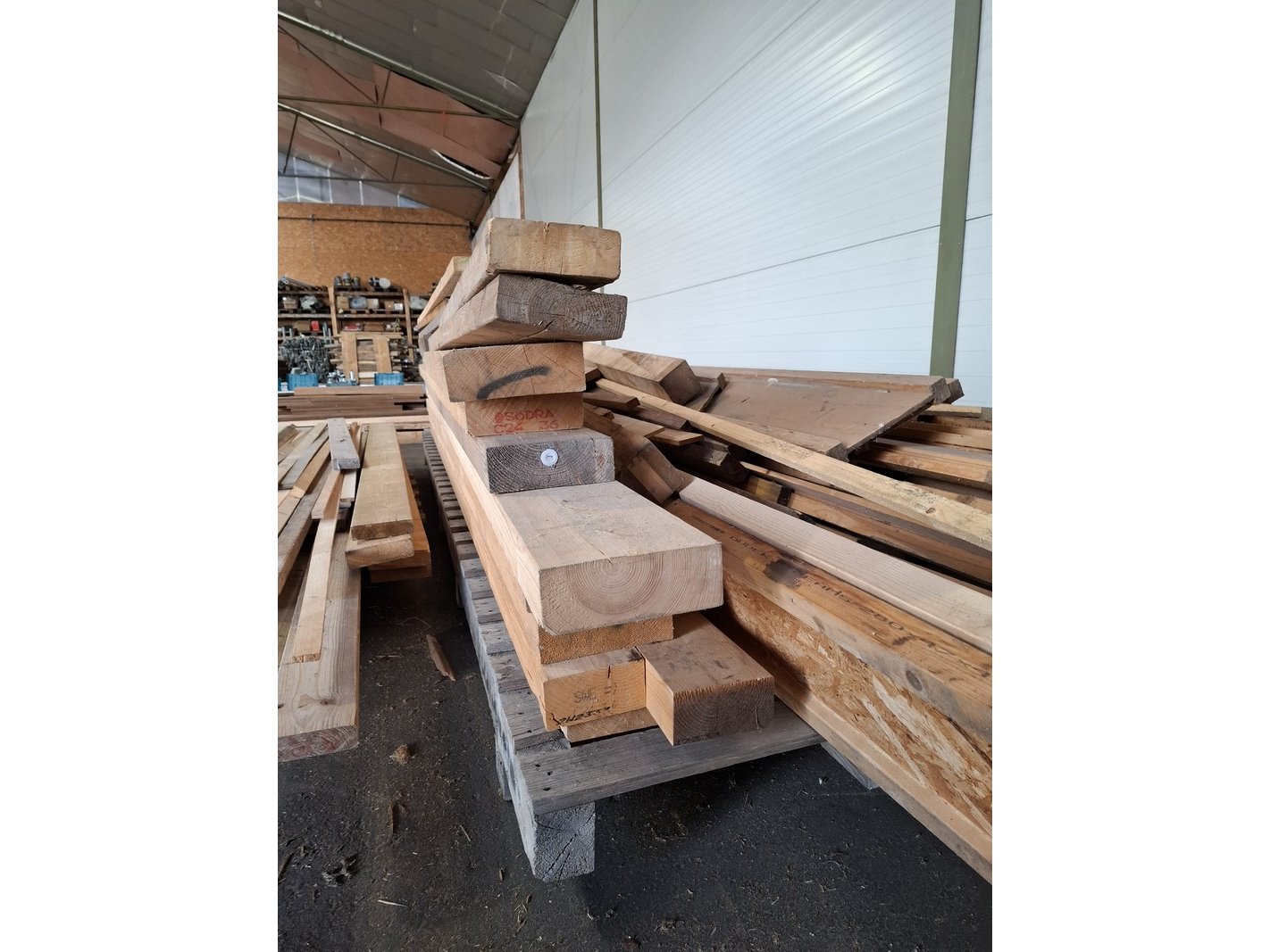 Product: Partij houten balken en planken Afmeting: diverse kopmaten en lengtes Specificaties: o.a. kopmaten: 70x195mm, 52x148mm, 38x120mm, 75x75mm, 20x55mm, 30x150mm etc. max lengte ca. 478cm