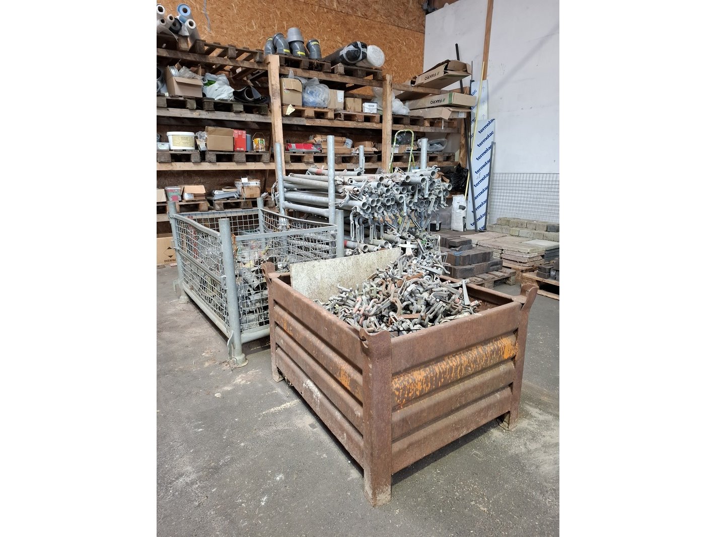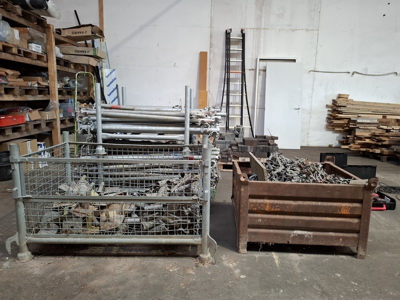 Product: Partij steigerbuis toebehoren Specificaties: in 4x transportbak