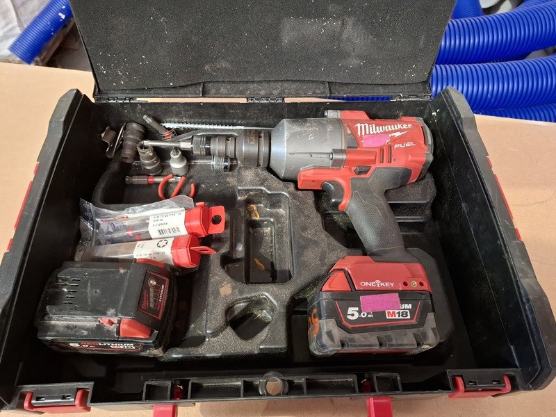 Merk: Milwaukee Product: Accu slagmoersleutel BouwJaar: 2021 Specificaties: inclusief 2x accu 18V, 5.0Ah, exclusief lader