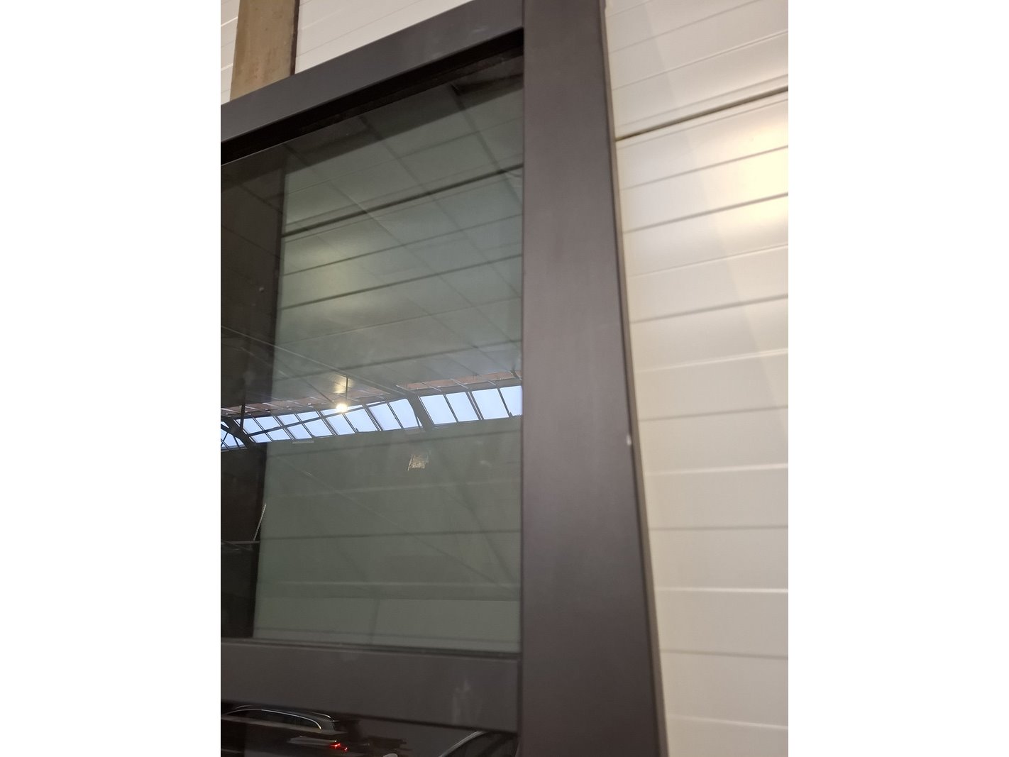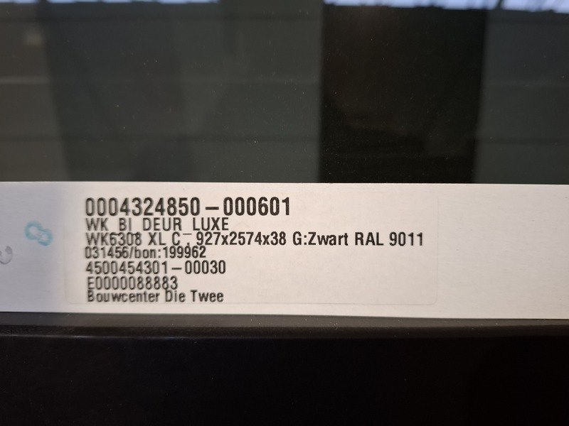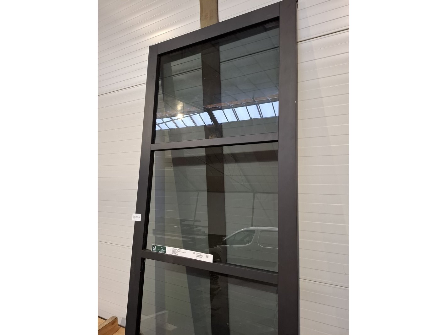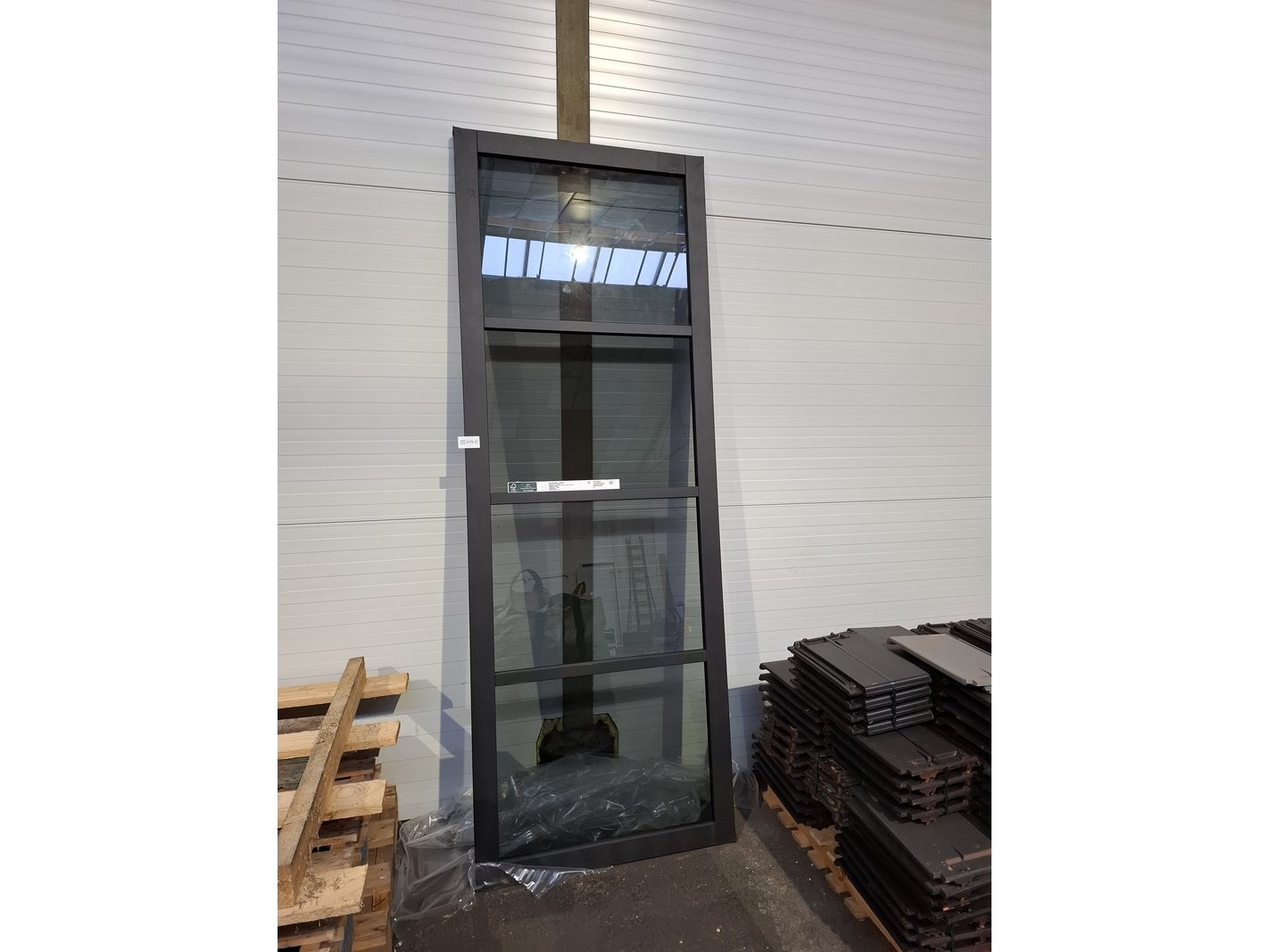 Product: Houten stompe binnendeur Kleur: ral 9011 Afmeting: 927x2574xz38 Specificaties: voorzien van getint glas