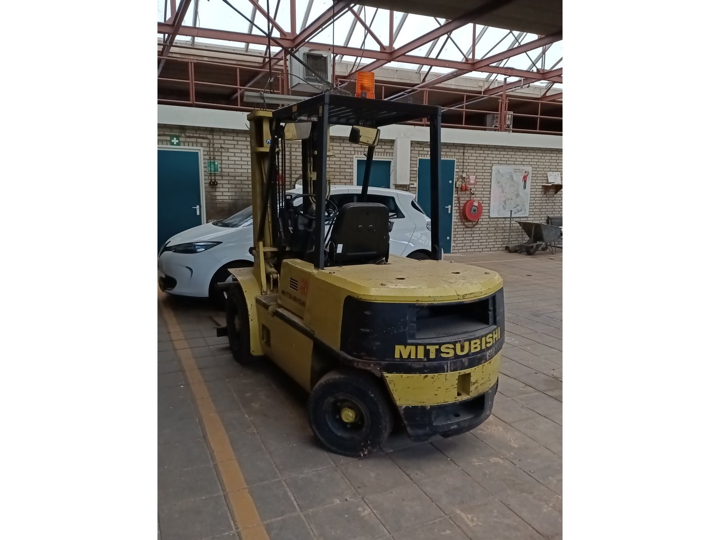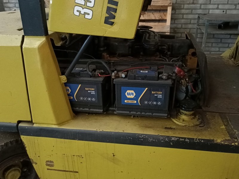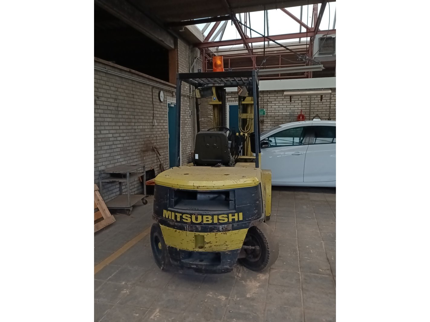 Merk: Mitsubishi Product: Heftruck Afmeting: Doorrijhoogte ca. 220 cm BouwJaar: 1989 Conditie: Gebruikt Specificaties: Hefhoogte ca. 4300 mm