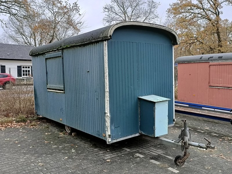 Merk: De Meeuw Product: Schaftkeet Afmeting: doorrijhoogte ca. 280 cm, lengte opbouw ca.430 cm, breedte ca.215 cm Conditie: Gebruikt